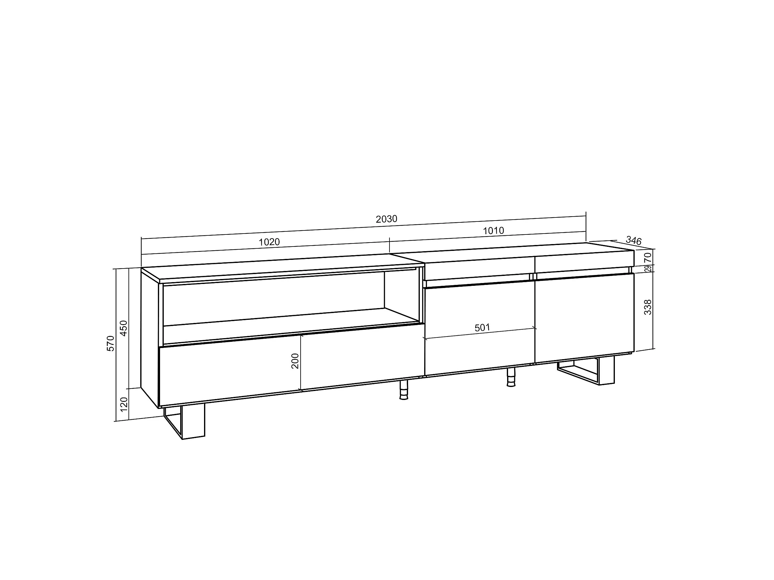 Meuble TV, Banc Télé, 200x35x57cm, Pour les TV jusqu'à 80", Design industriel, Chêne et noir