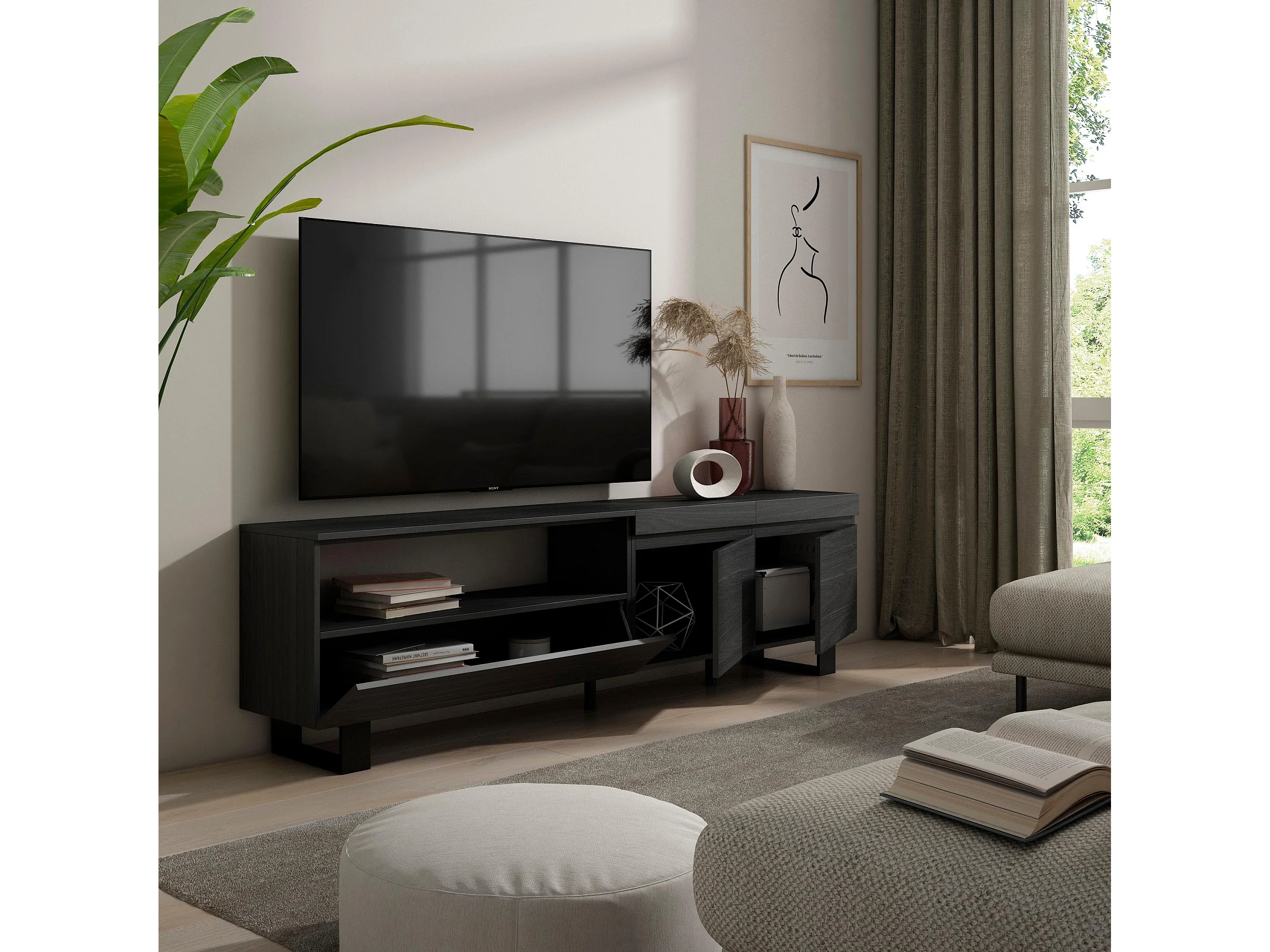 Meuble TV, Banc Télé, 200x35x57cm, Pour les TV jusqu'à 80", Design industriel, Noir