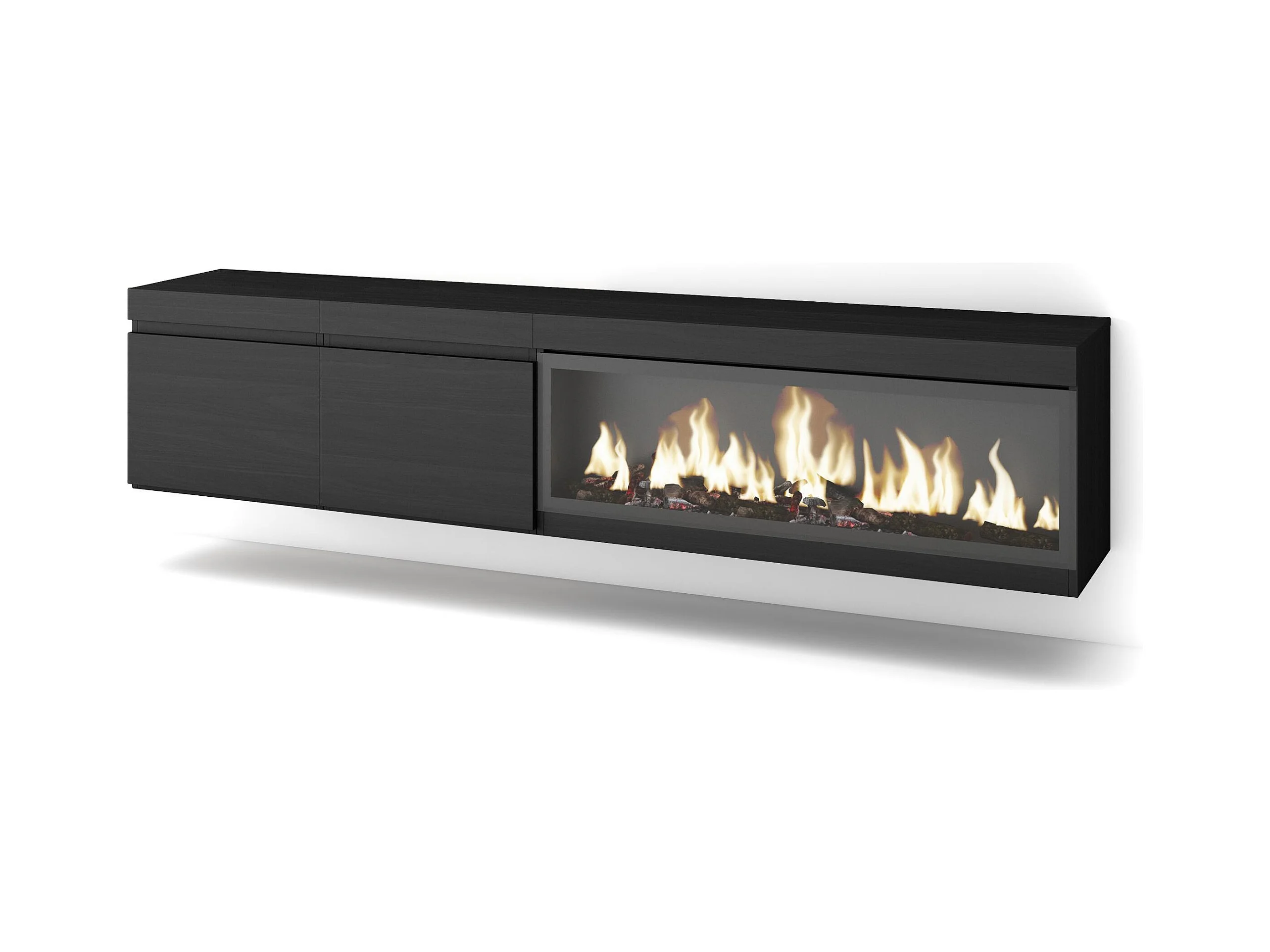 Meuble TV, Banc Télé, 158x35x45cm, Pour les TV jusqu'à 65", Cheminée électrique XXL, Suspendu, Mural, Noir