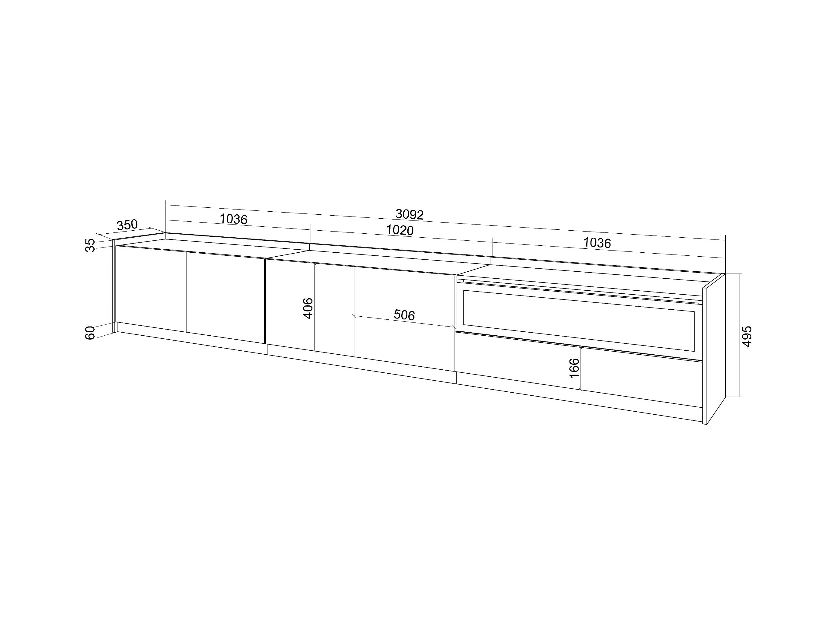 Meuble TV | Banc Télé, 310x50x37 cm, Pour les TV jusqu'à 80", Meubles de salon, Chêne et noir