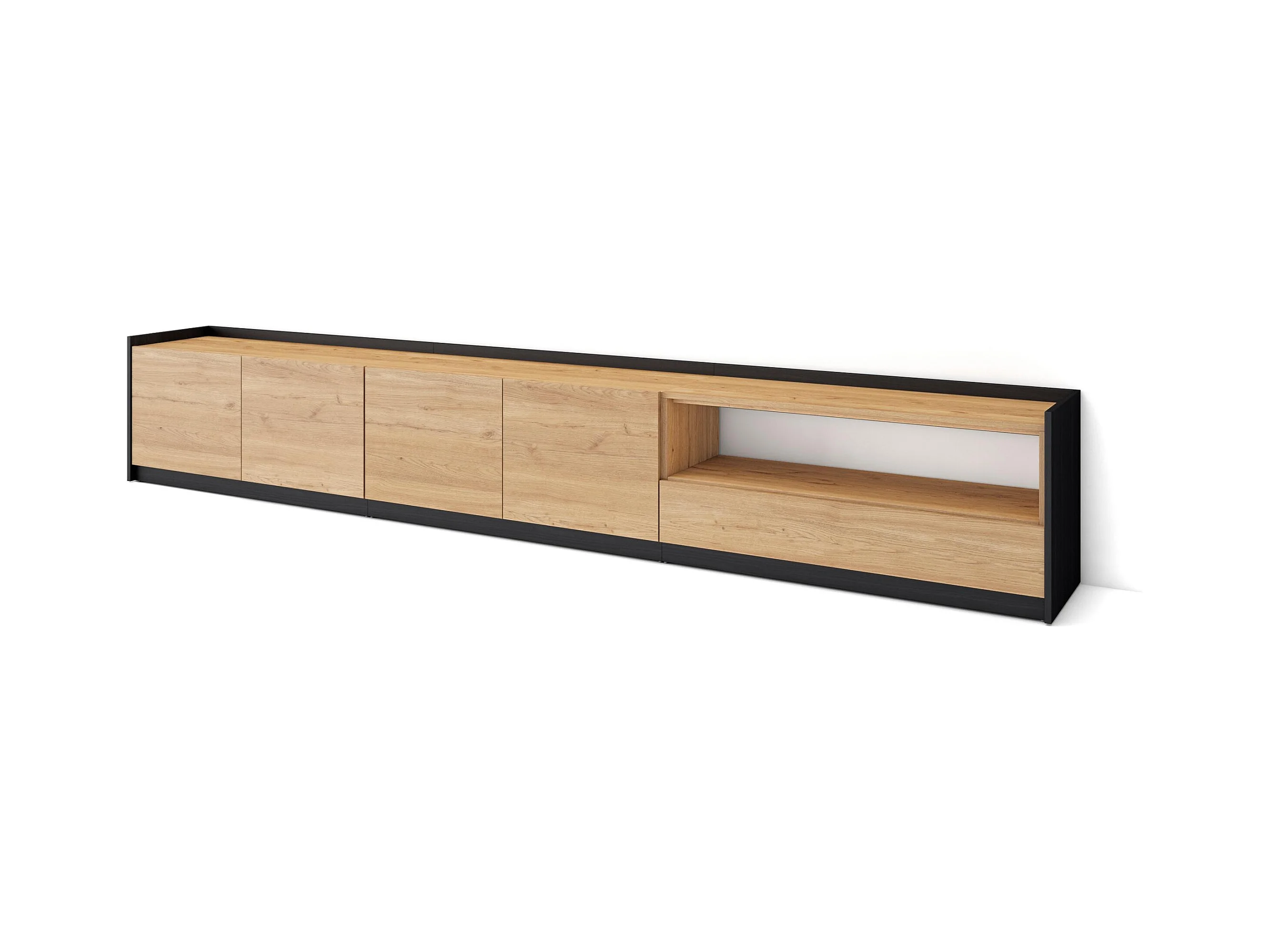 Meuble TV | Banc Télé, 310x50x37 cm, Pour les TV jusqu'à 80", Meubles de salon, Chêne et noir