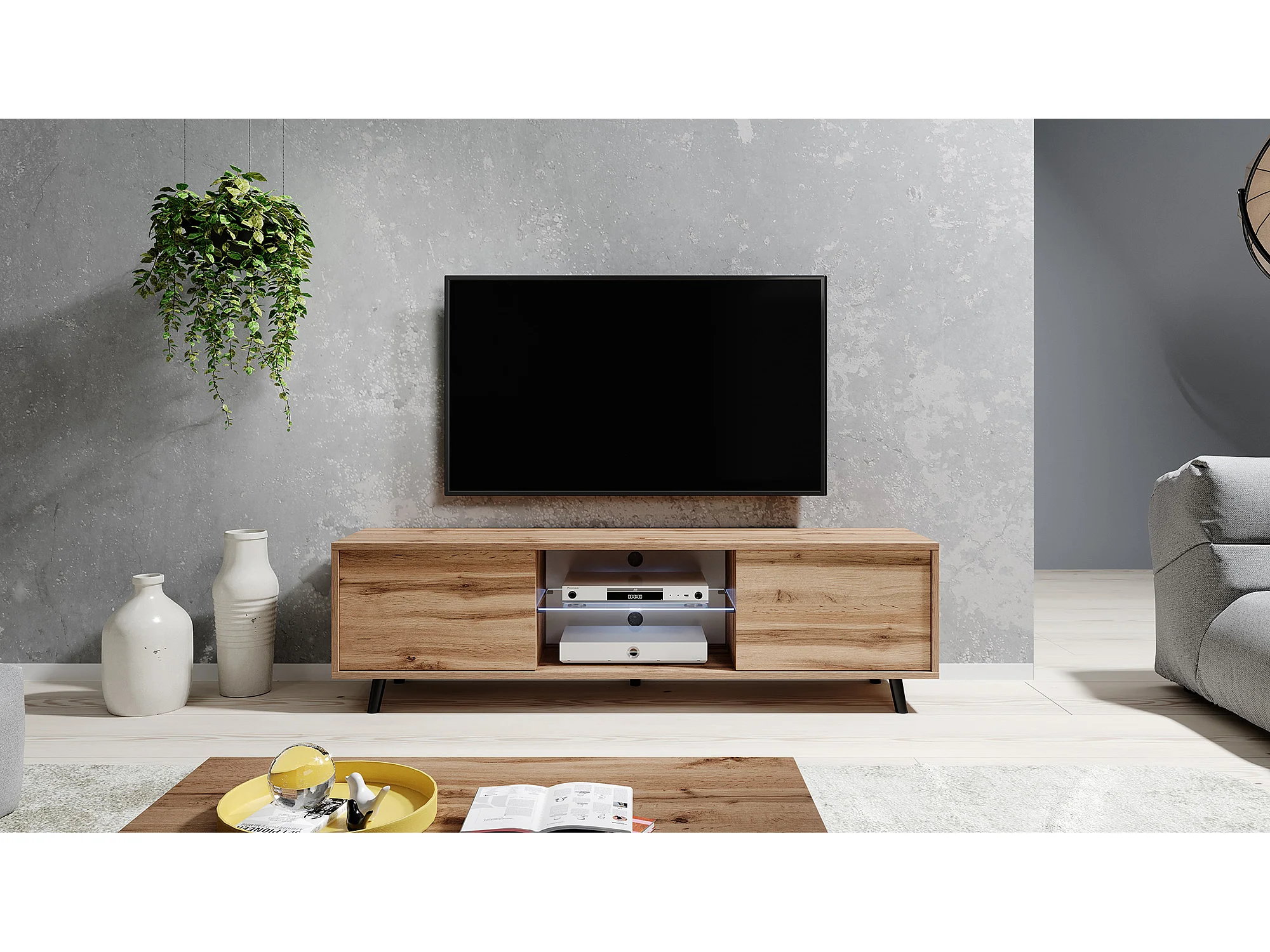 Meuble tv / Banc tv 140 cm - chêne wotan, éclairage LED - LEFYR