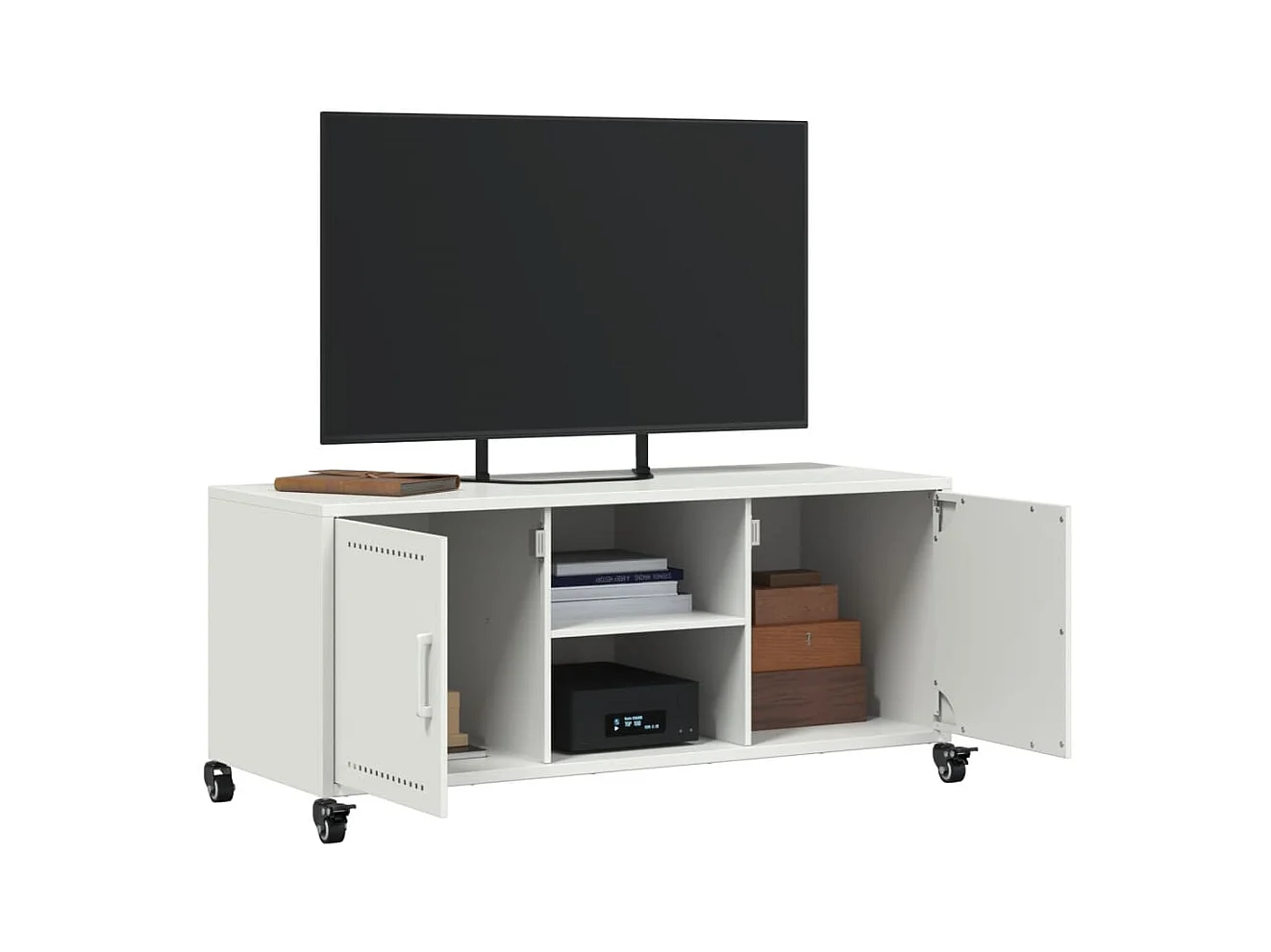 Meuble TV blanc 100,5x39x50,5 cm acier laminé à froid