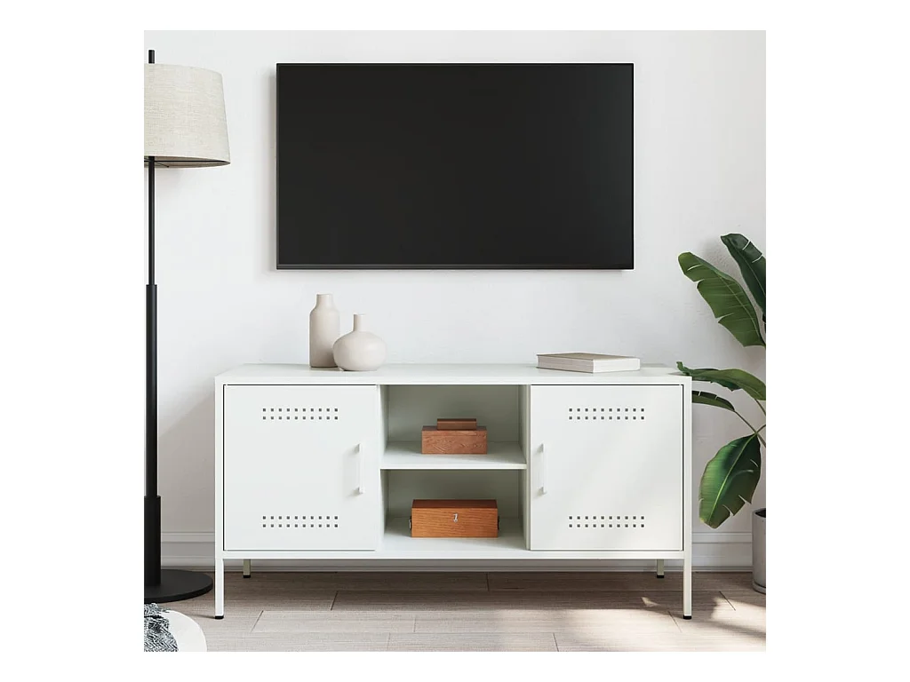 Meuble TV blanc 100,5x39x50,5 cm acier FR653828