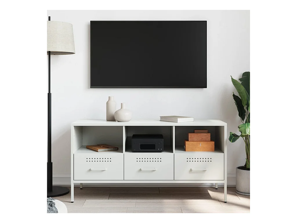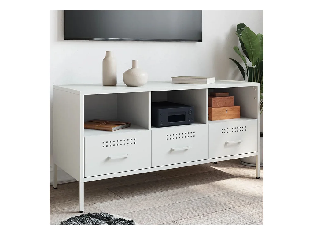 Meuble TV blanc 100,5x39x43,5 cm acier