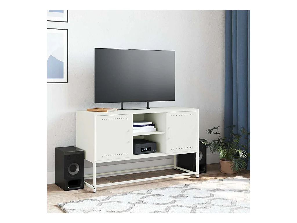 Meuble TV blanc 100,5x39x43,5 cm acier