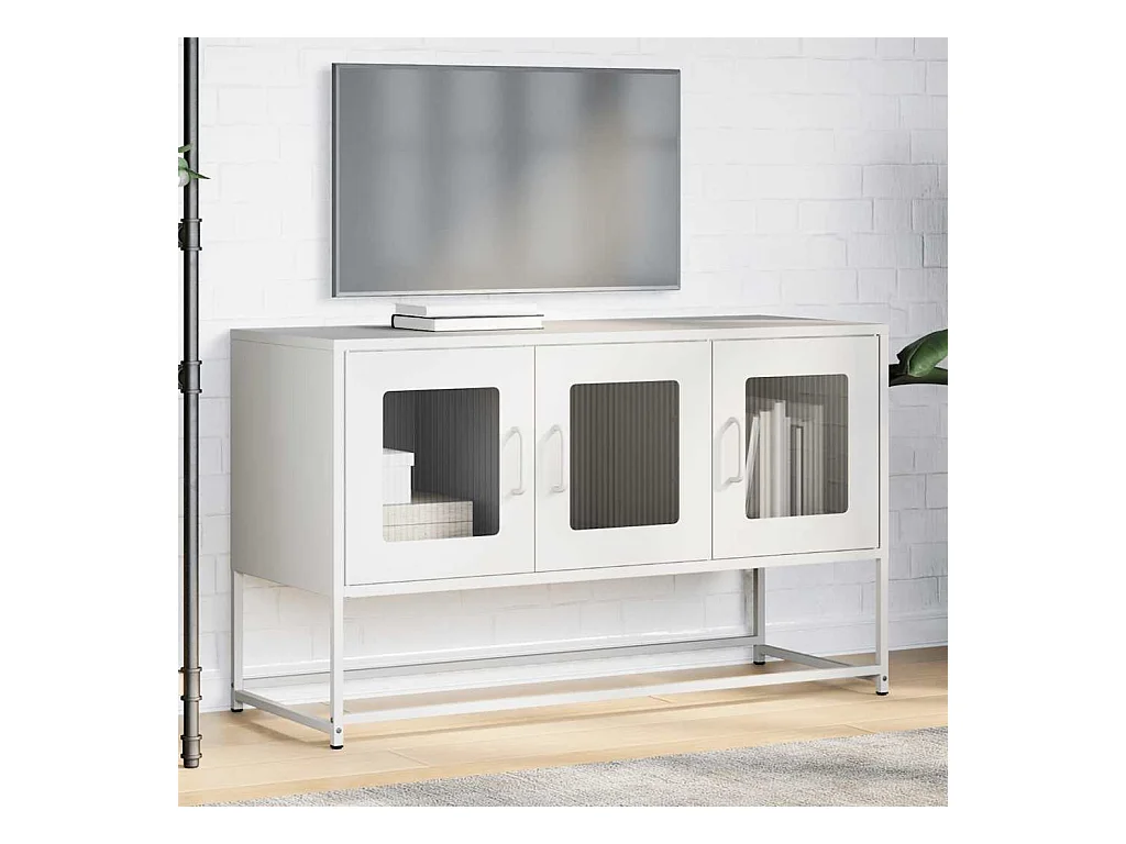 Meuble TV blanc 100,5x39x60,5 cm acier laminé à froid