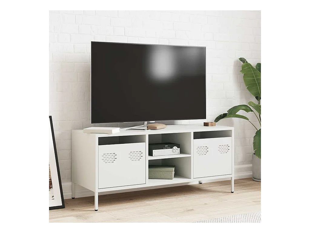 Meuble TV blanc 101,5x39x43,5 cm acier laminé à froid