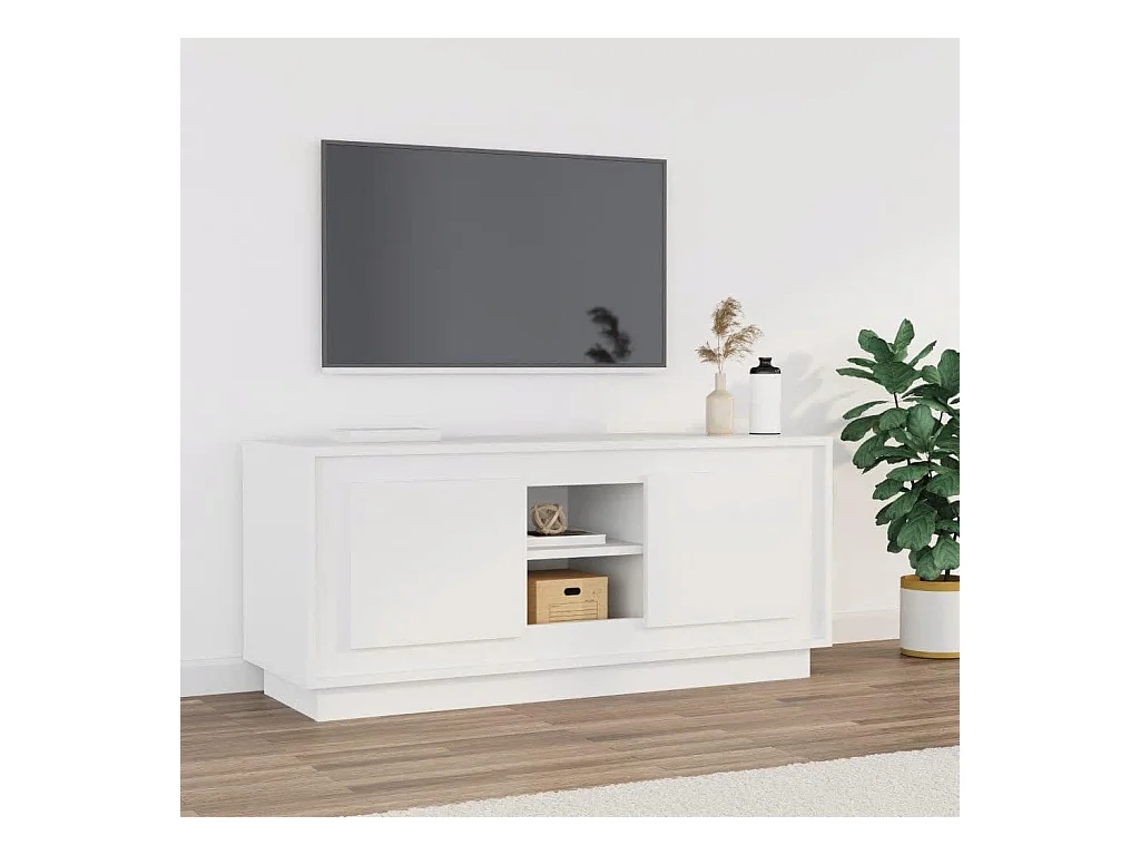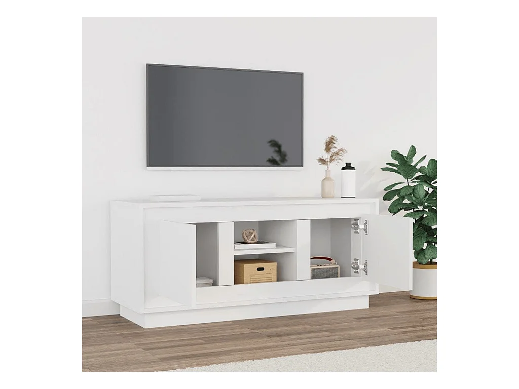Meuble TV blanc 102x35x45 cm bois d'ingénierie