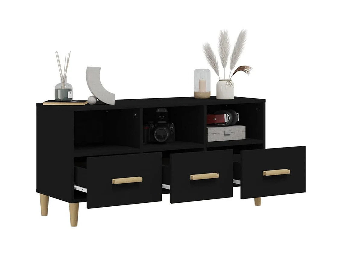 Meuble TV noir 102x36x50 cm bois d'ingénierie