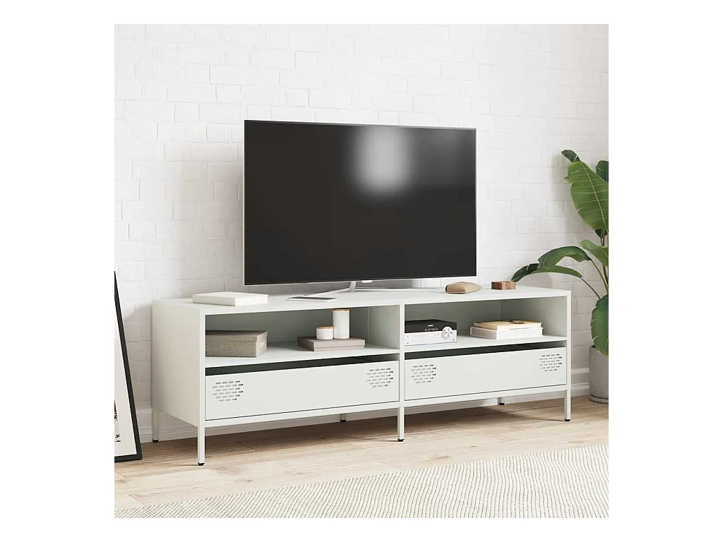 Meuble TV blanc 135x39x43,5 cm acier laminé à froid