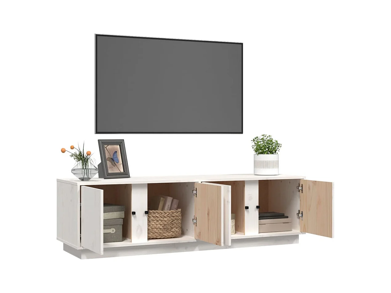 Meuble TV Blanc 140x40x40 cm Bois de pin massif