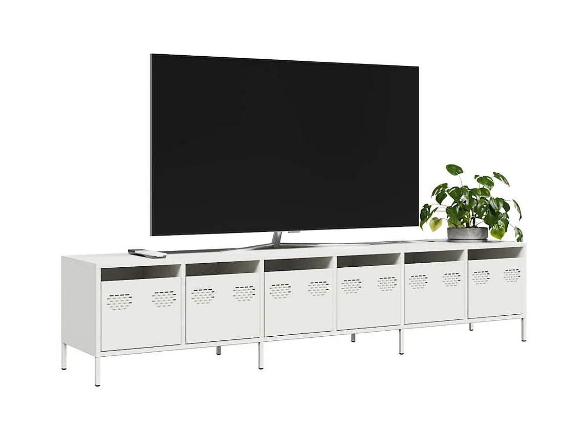 Meuble TV blanc 202x39x43,5 cm acier laminé à froid
