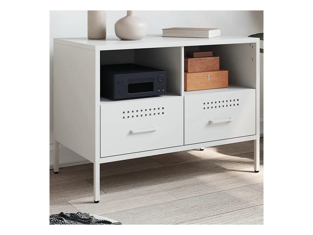 Meuble TV blanc 68x39x50,5 cm acier laminé à froid FR923550