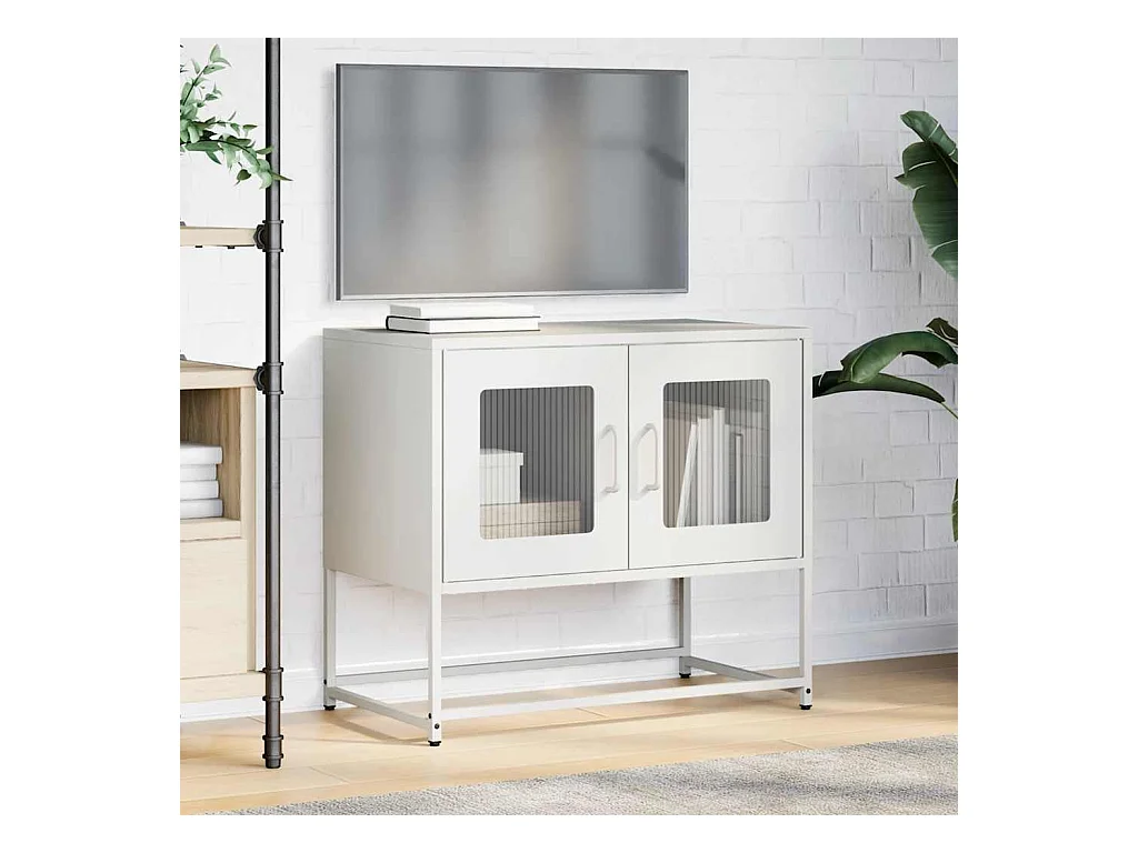 Meuble TV blanc 68x39x60,5 cm acier laminé à froid