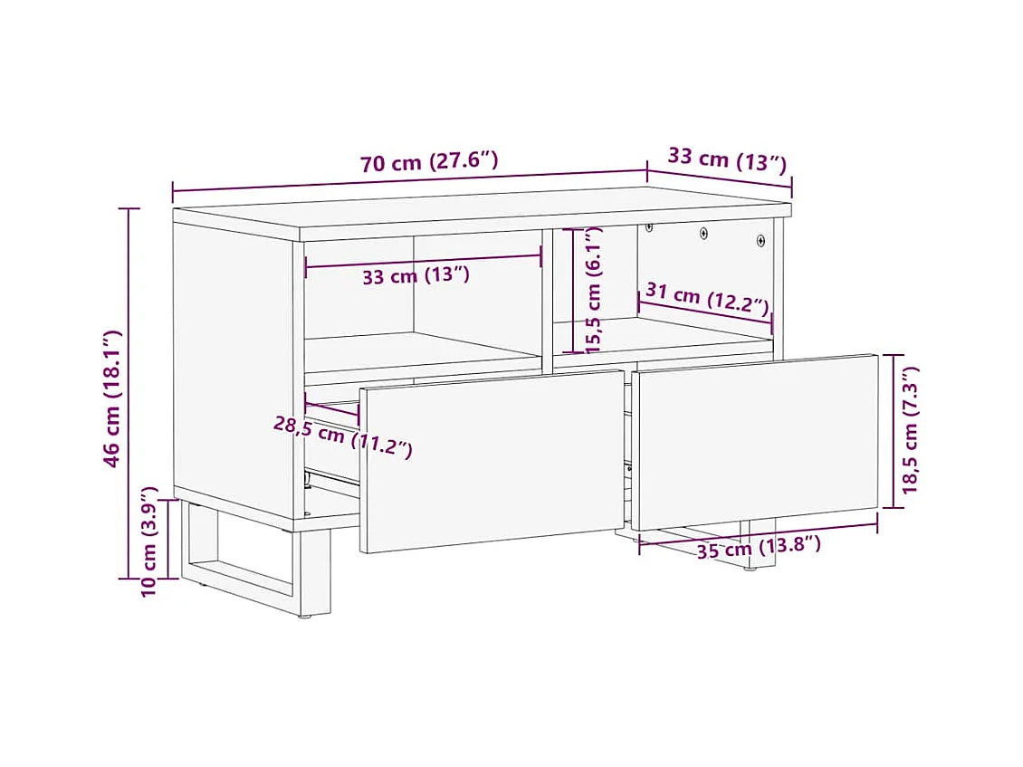 Meuble TV Blanc 70 x 33 x 46 cm bois de manguier massif