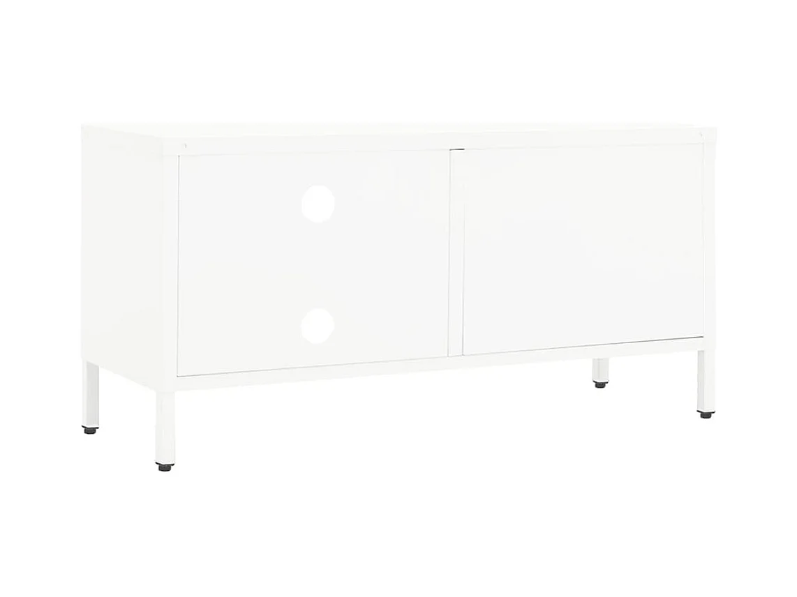 Meuble TV Blanc 90x30x44 cm Acier et verre