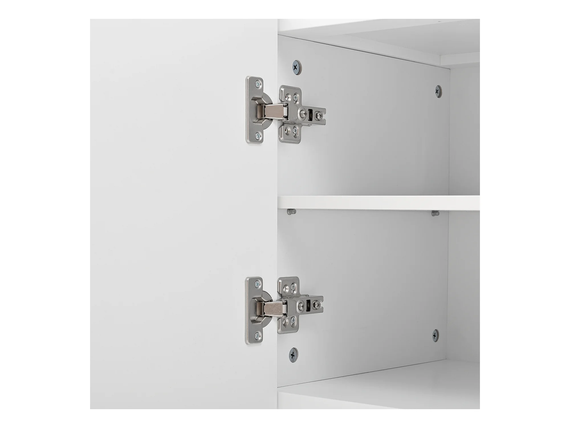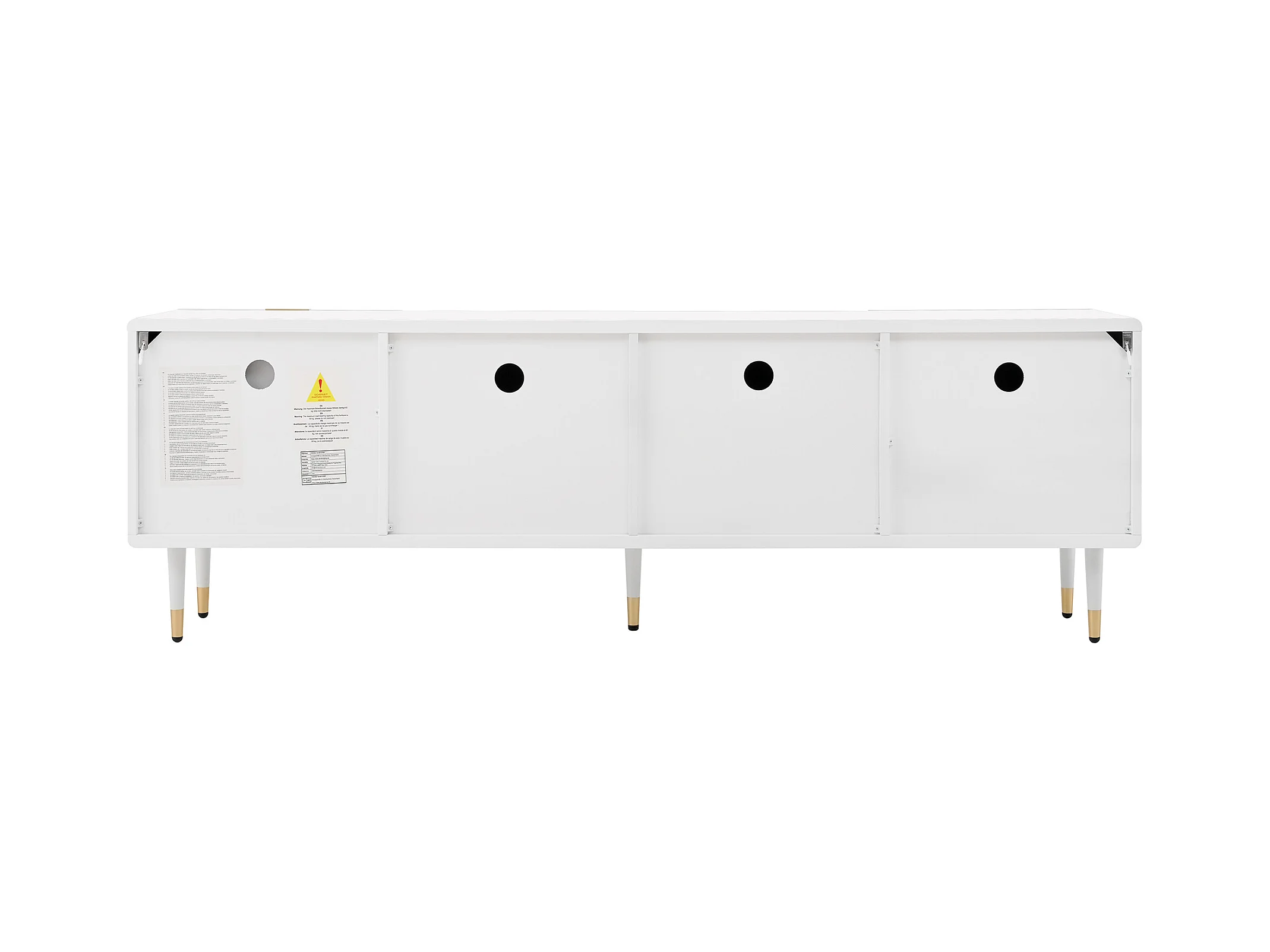 Meuble TV blanc - Meuble TV à 4 portes avec structure en treillis - touches dorées et pieds réglables