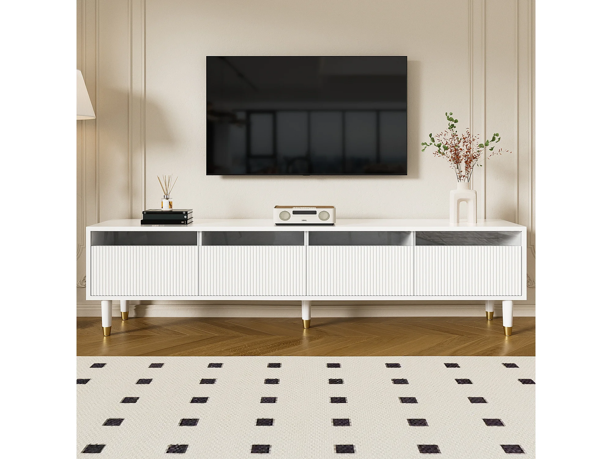 Meuble TV blanc brillant - Meuble TV avec éclairage LED et 4 tiroirs - compatible avec les téléviseurs d'environ 80 pouces