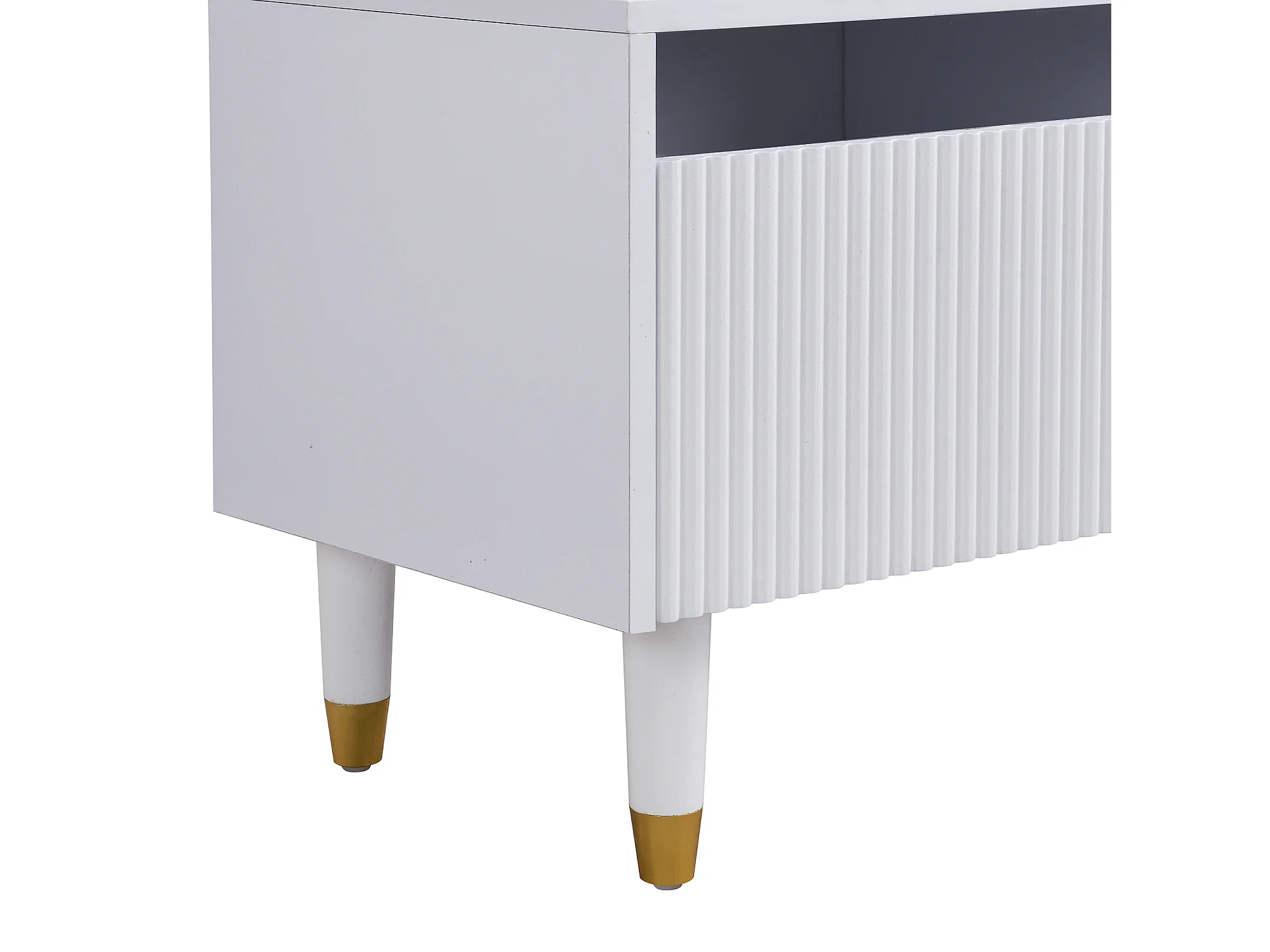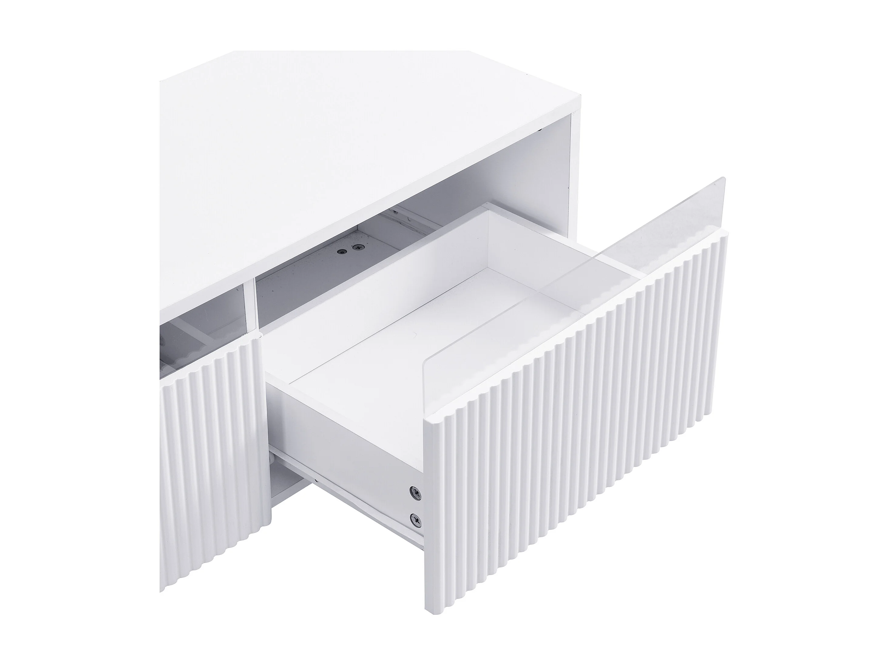 Meuble TV blanc avec 2 tiroirs et étagères ouvertes - Éclairage LED