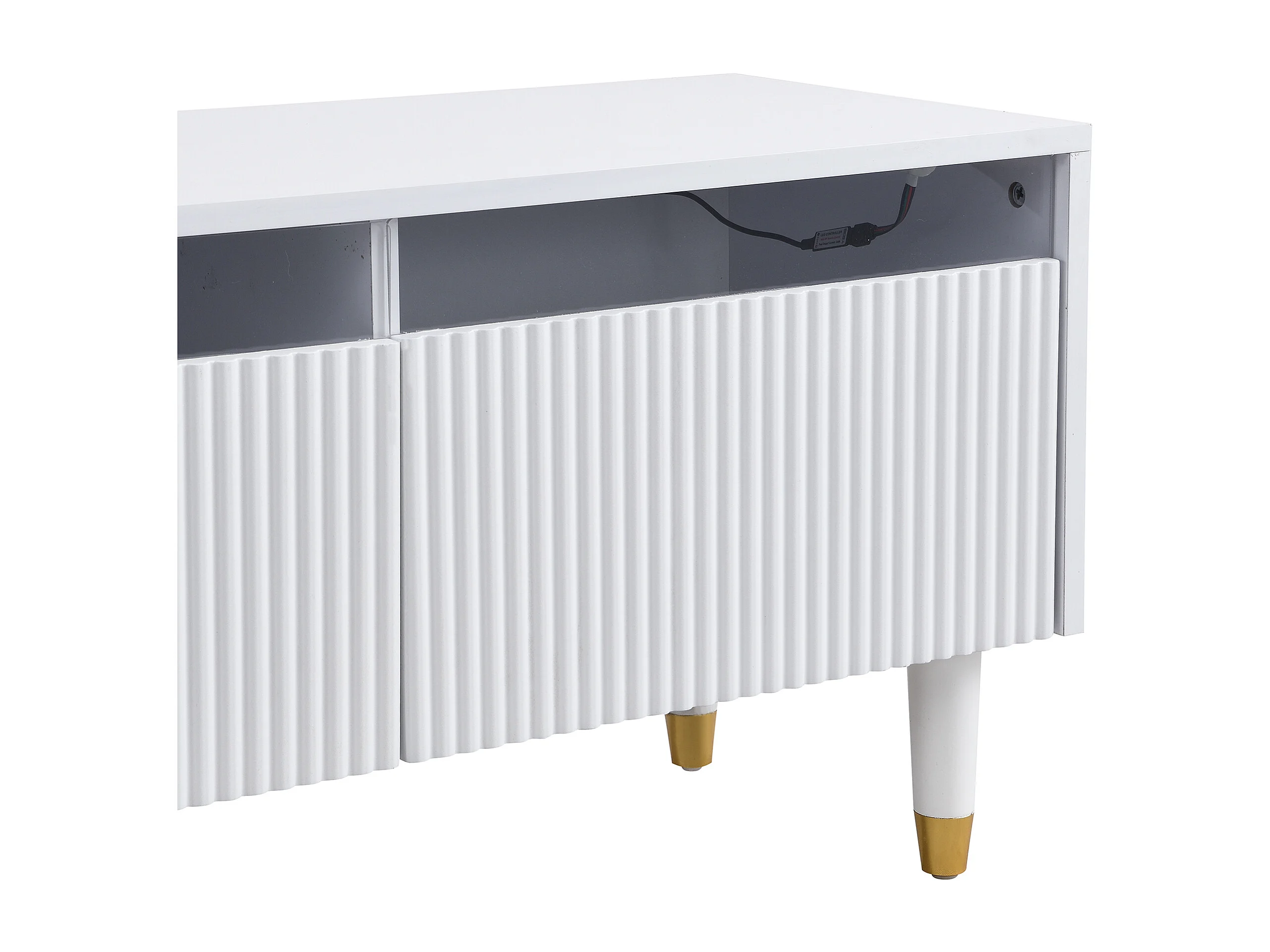 Meuble TV blanc avec éclairage LED, 2 tiroirs et 2 portes, pour salon et chambre