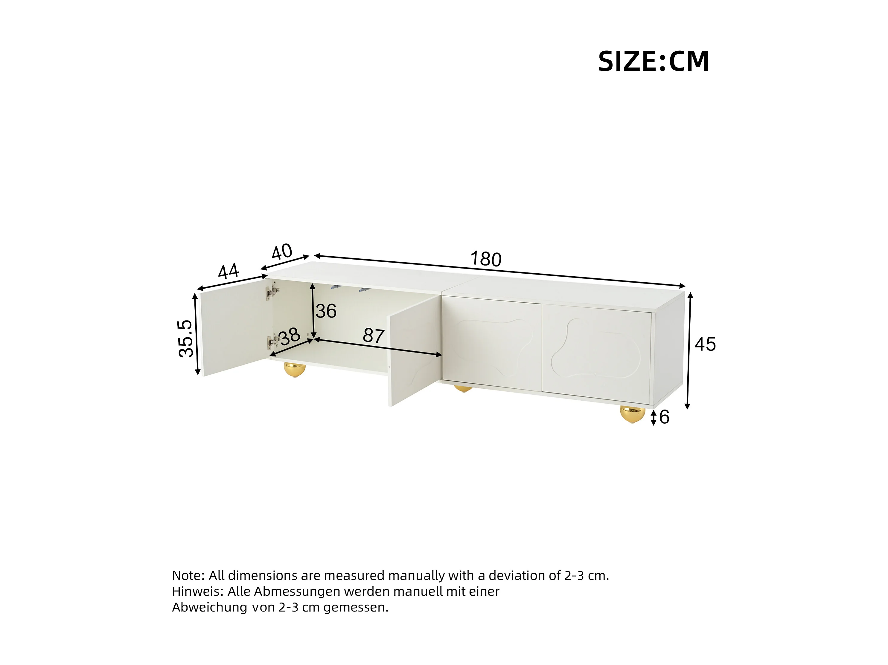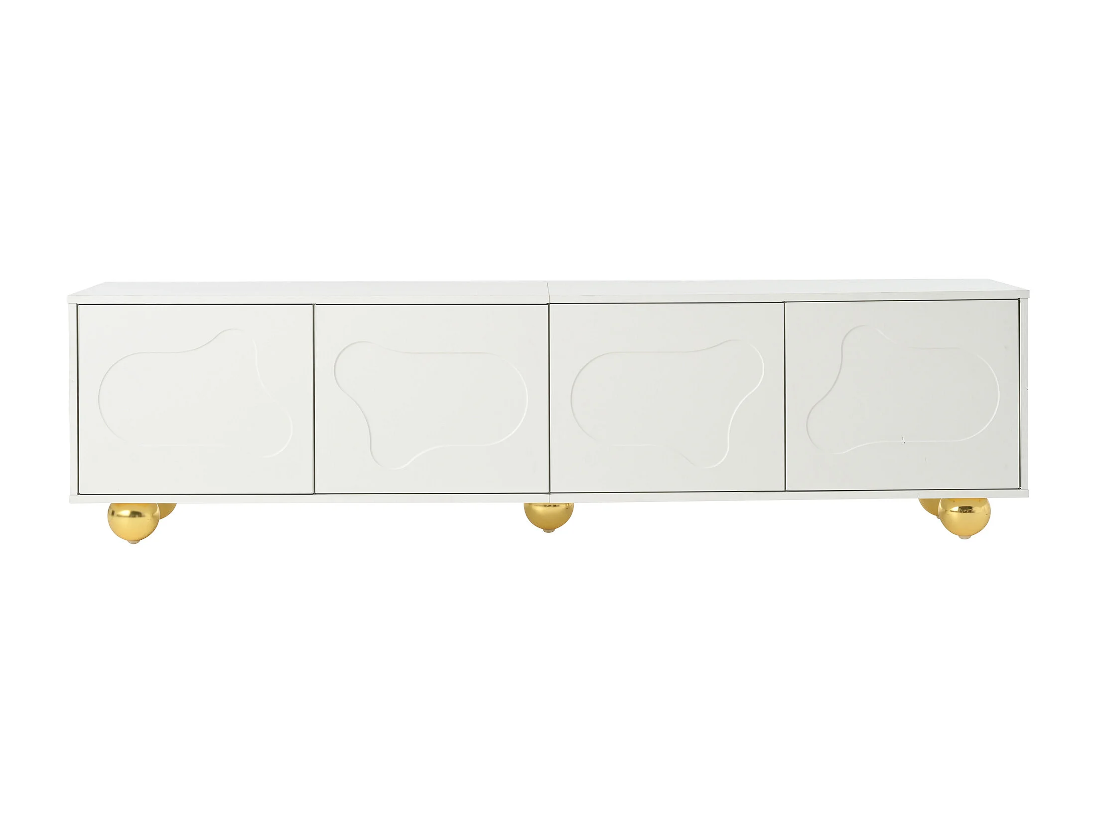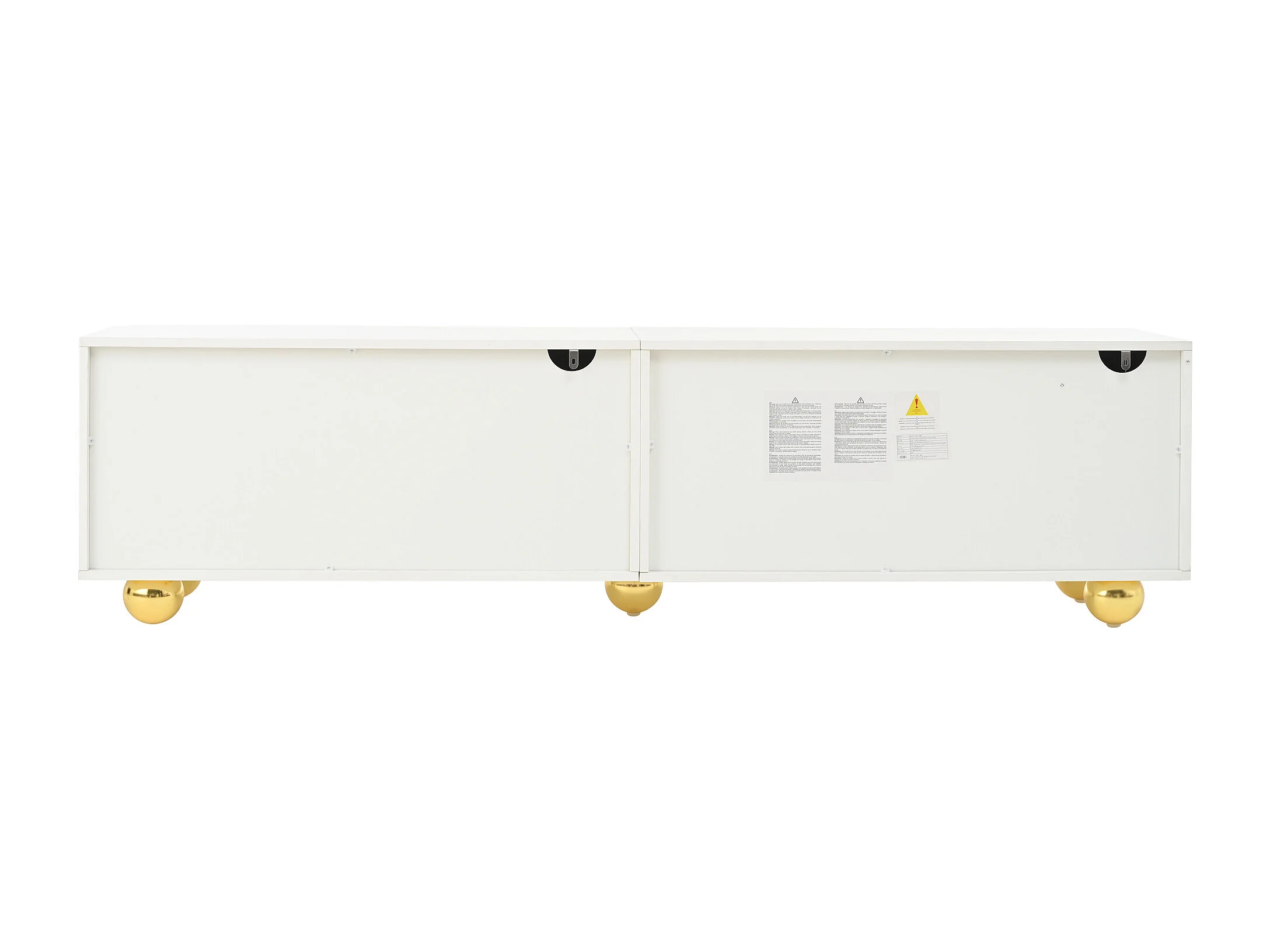 Meuble tv 180x40x45cm bois mignon cartoon avec 4 portes et rangement - pieds en métal - blanc