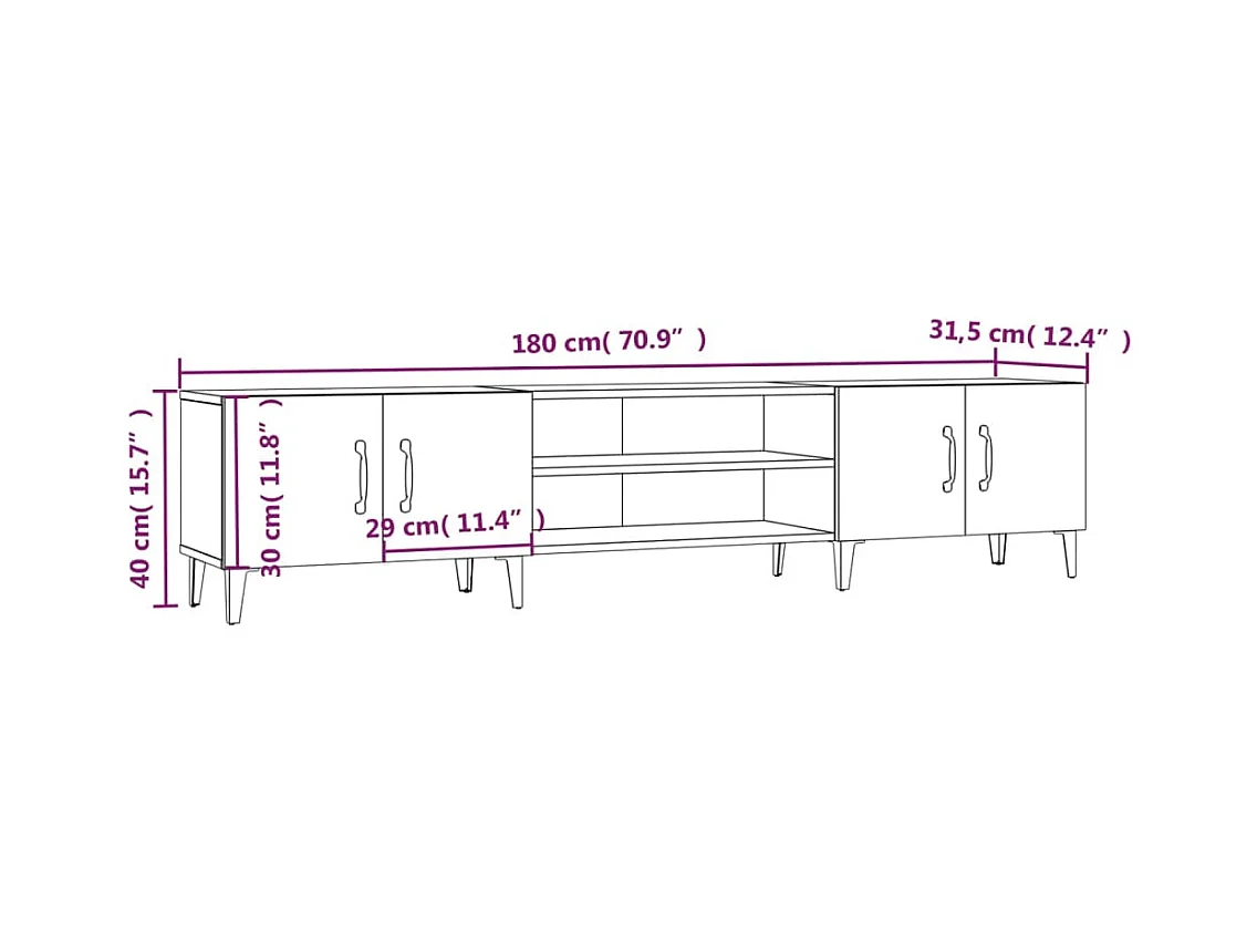 Meuble TV blanc 180x31,5x40 cm bois d'ingénierie