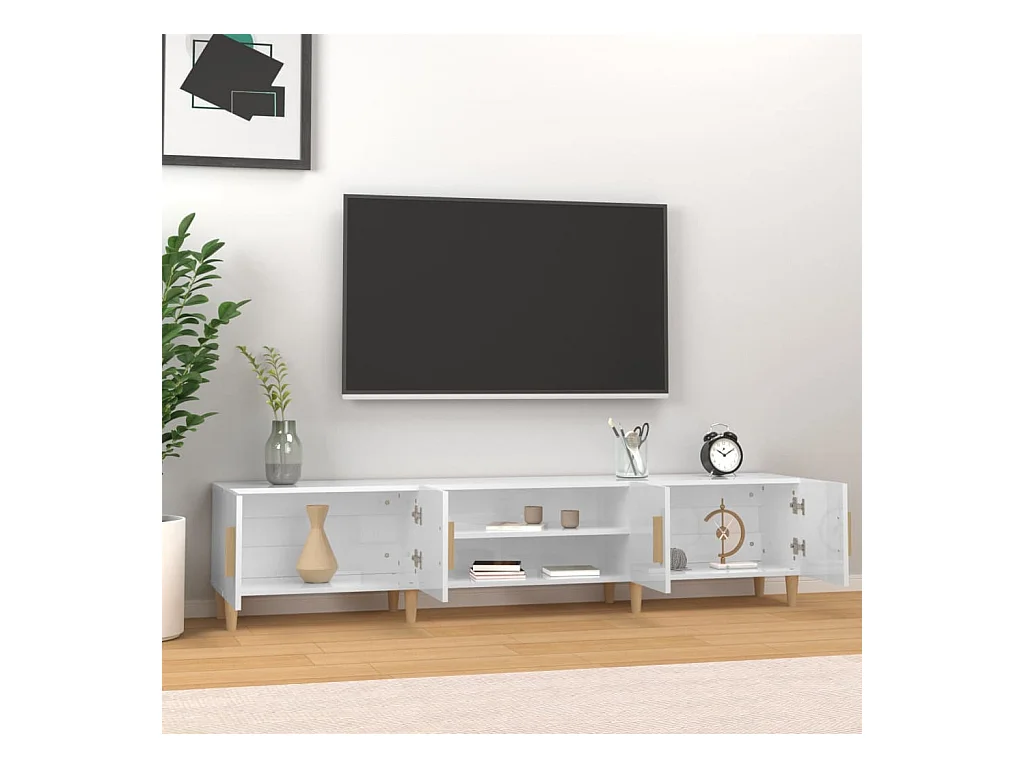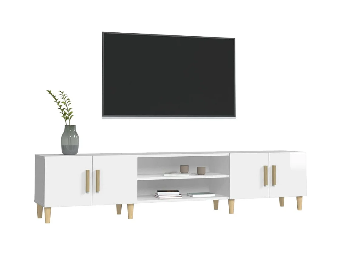 Meuble TV blanc brillant 180x31,5x40 cm bois d'ingénierie