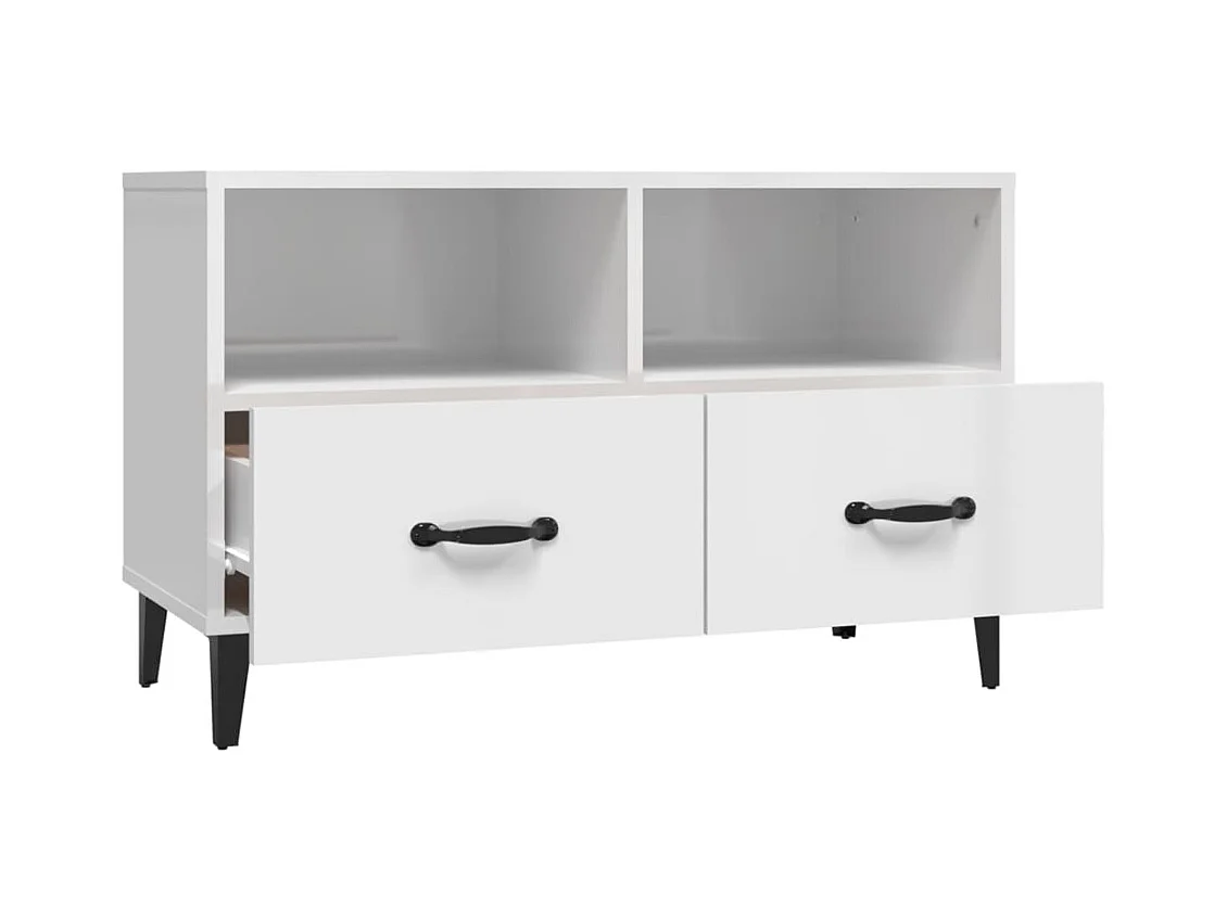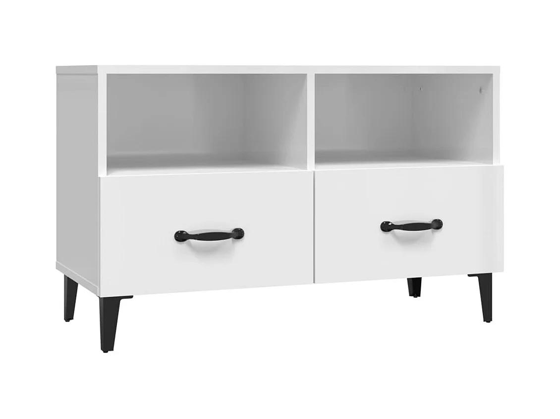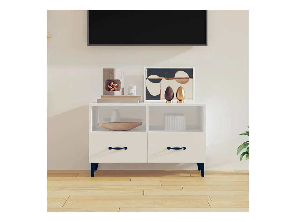 Meuble TV blanc brillant 80x35x50 cm bois d'ingénierie