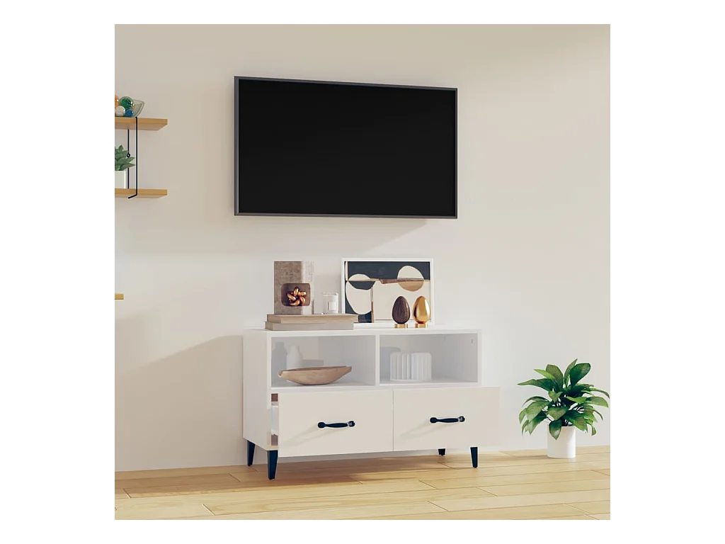 Meuble TV blanc 102x36x50 cm bois d'ingénierie