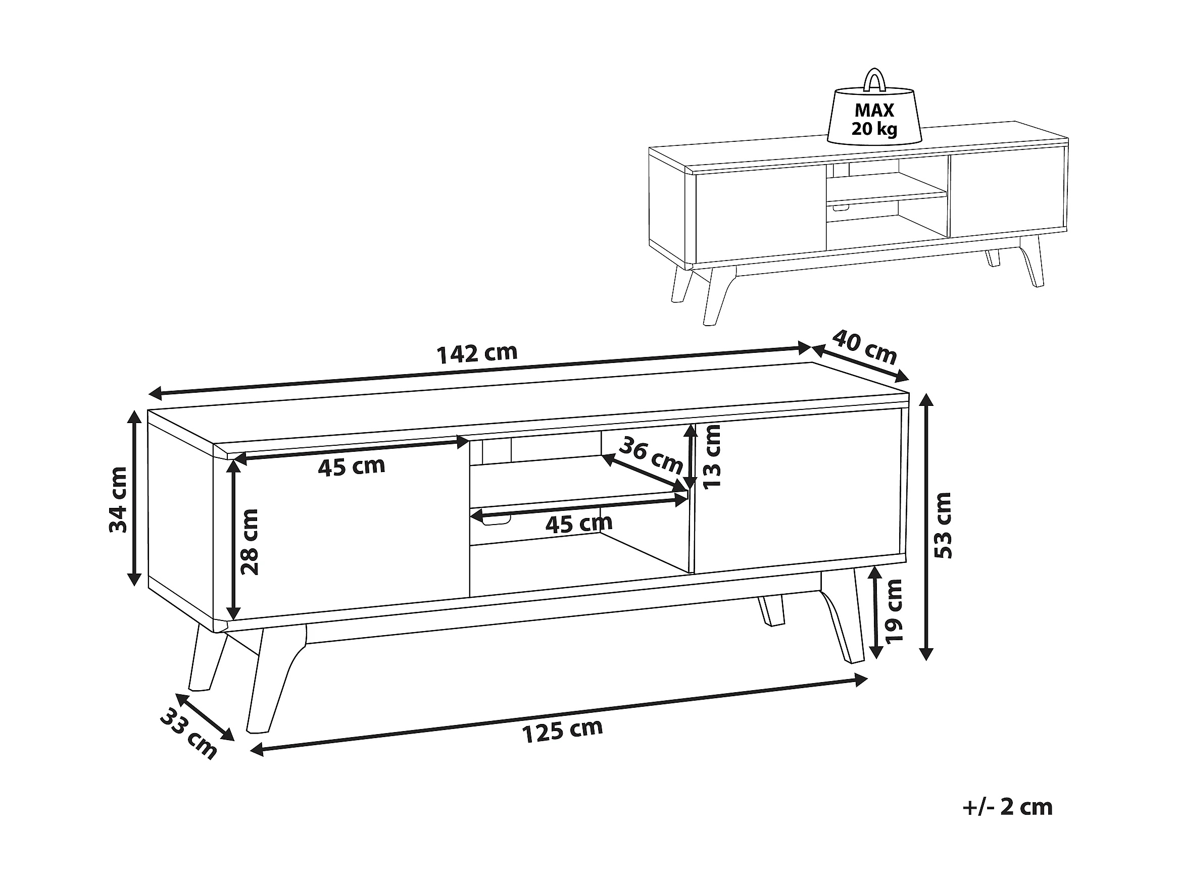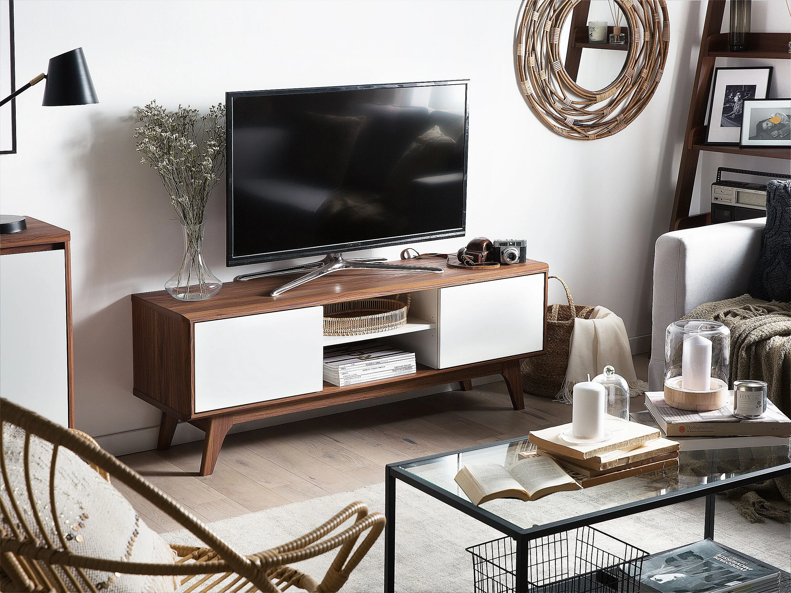 Meuble TV ROCHESTER Marron/blanc
