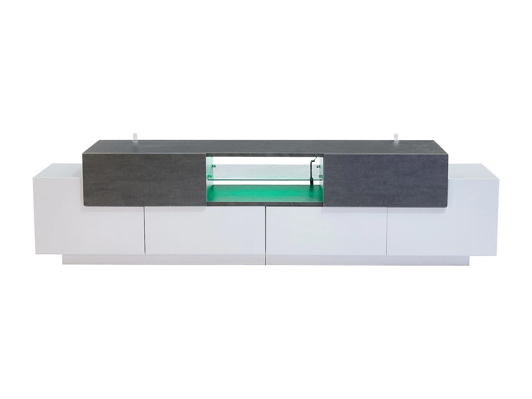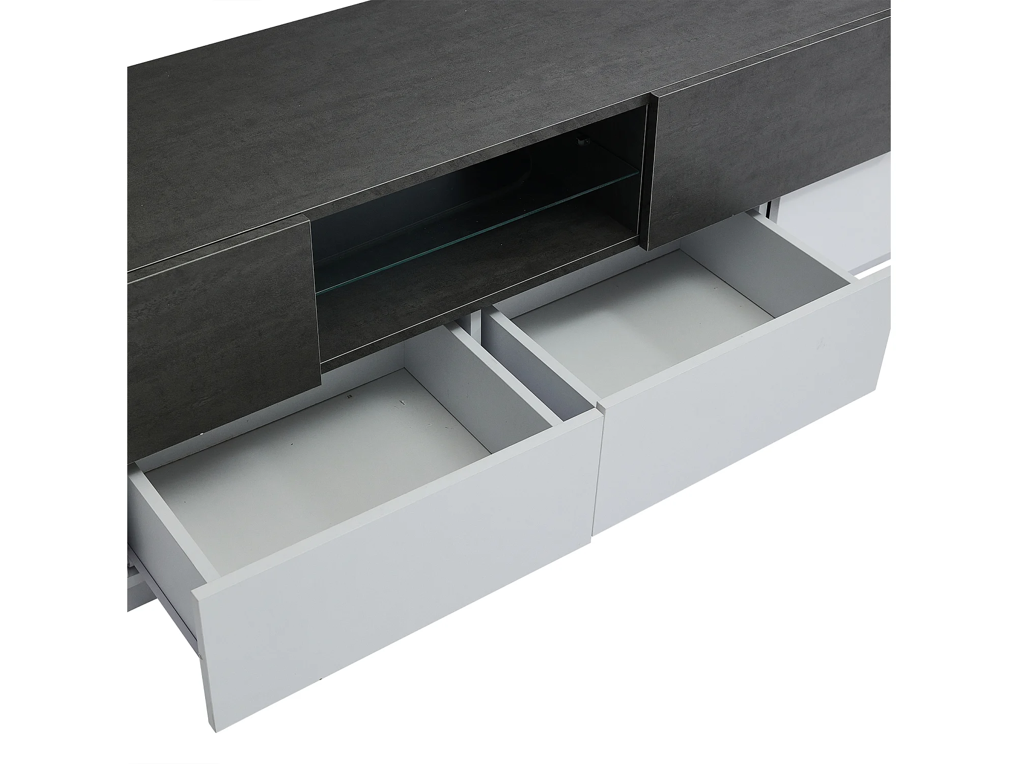 Meuble TV blanc - Meuble TV avec 4 portes et 2 tiroirs - avec éclairage LED et étagères en verre - pour salon et chambre