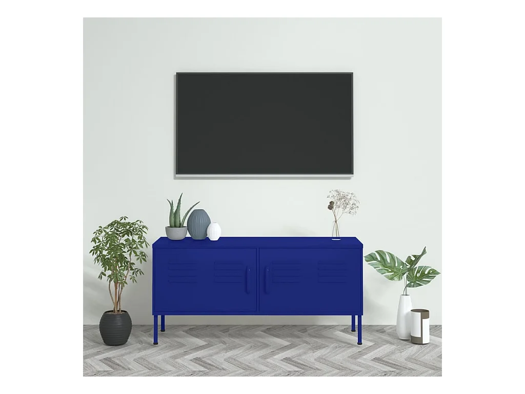 Meuble TV Bleu marine 105x35x50 cm Acier BE64702