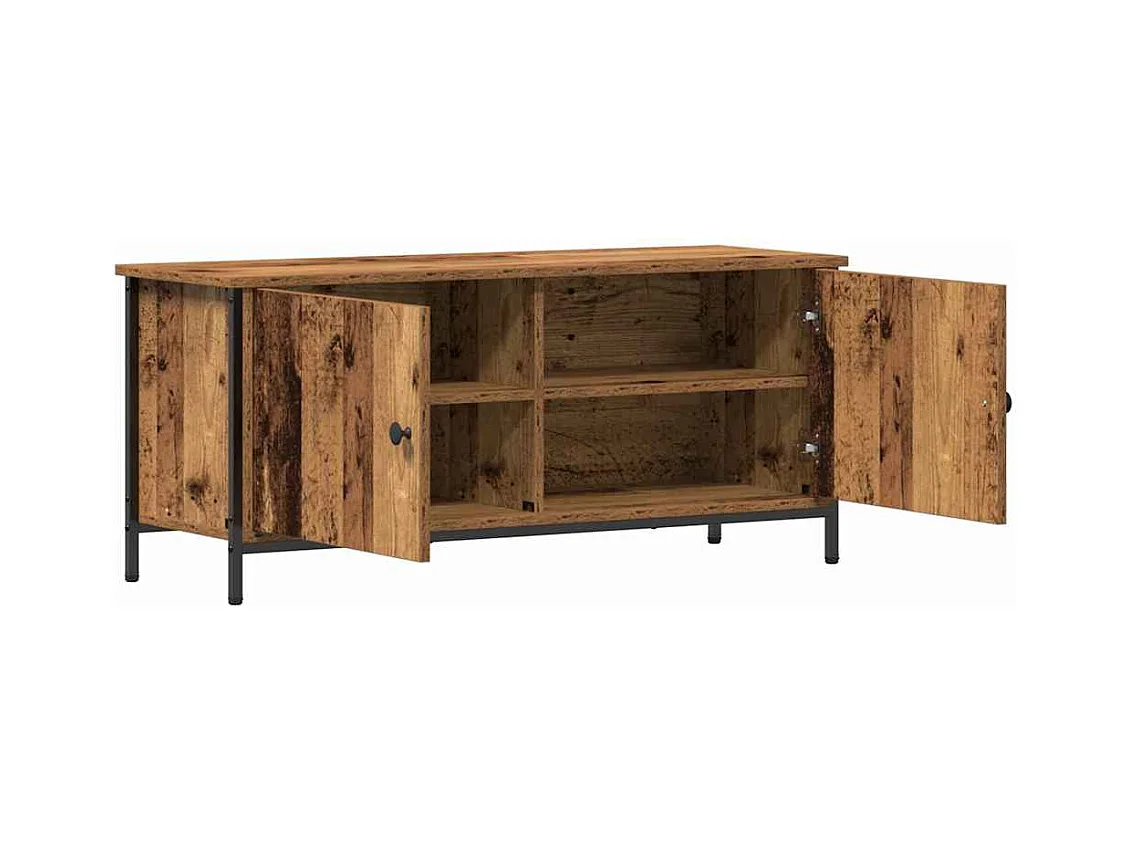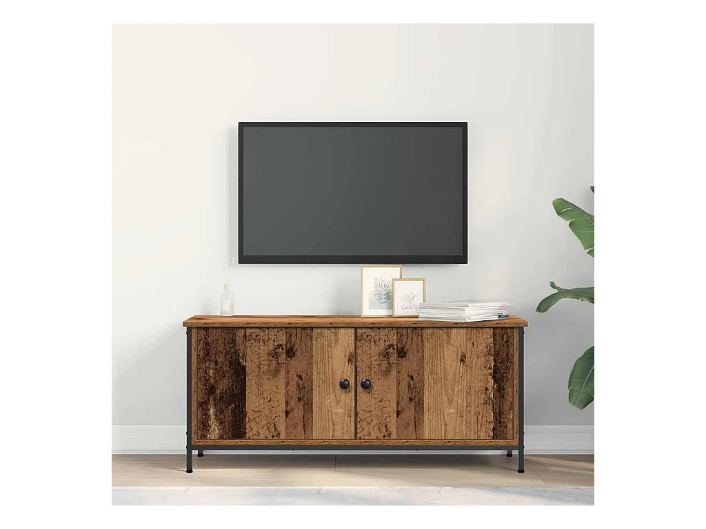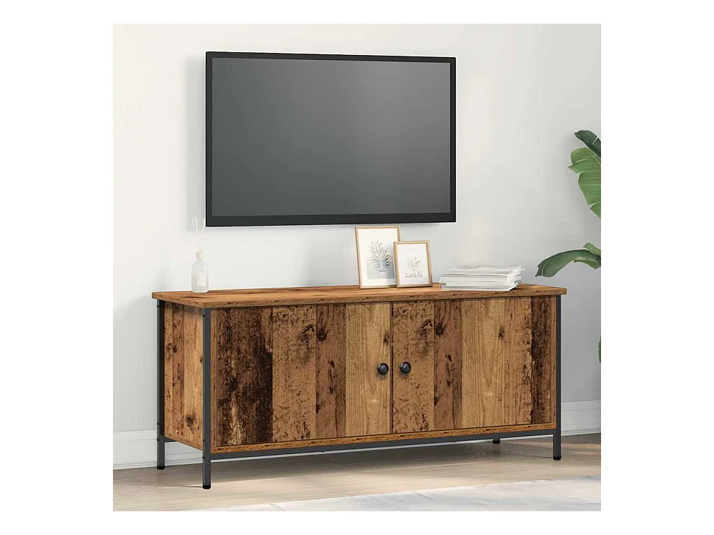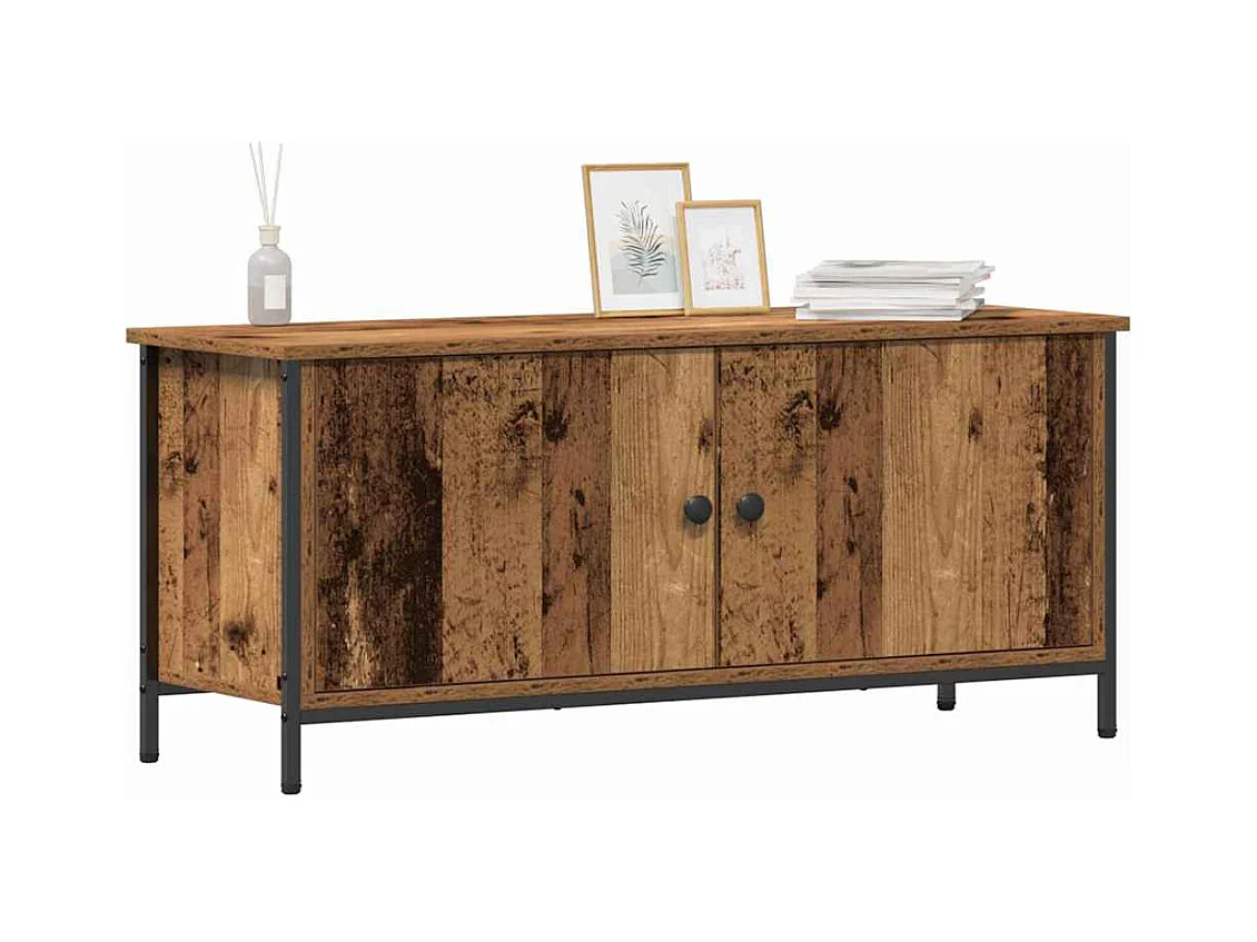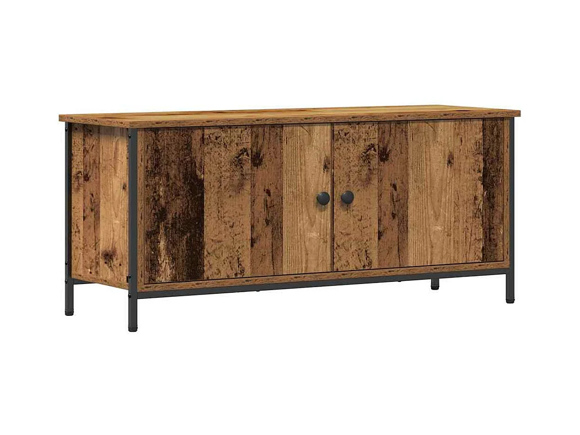 Meuble TV Bois Vieilli 100x35x45 cm Bois Aggloméré et Acier