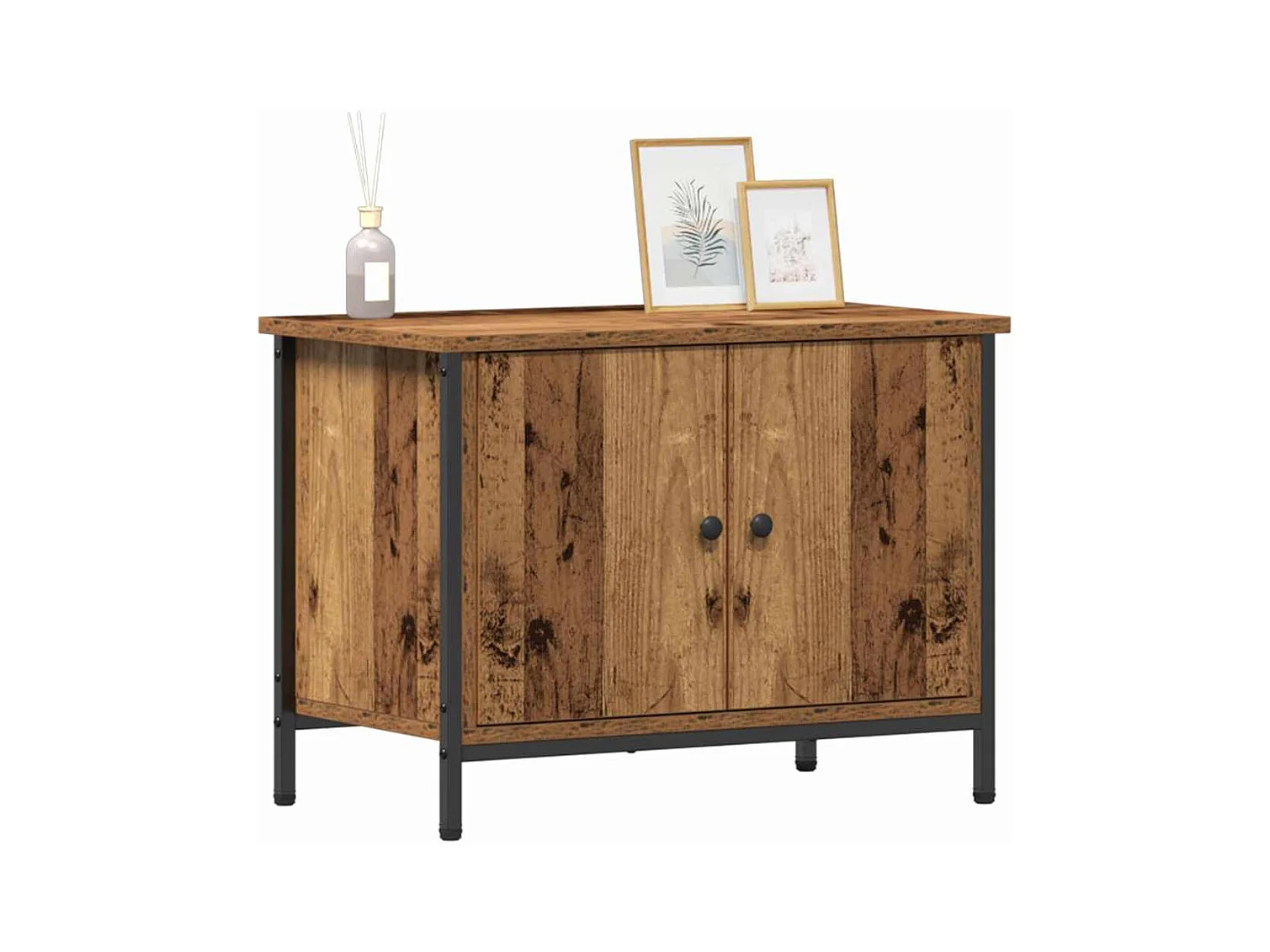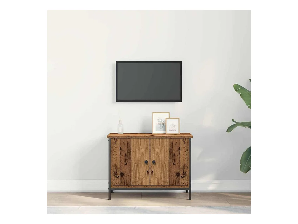 Meuble TV Bois Vieilli 100x35x45 cm Bois Aggloméré et Acier