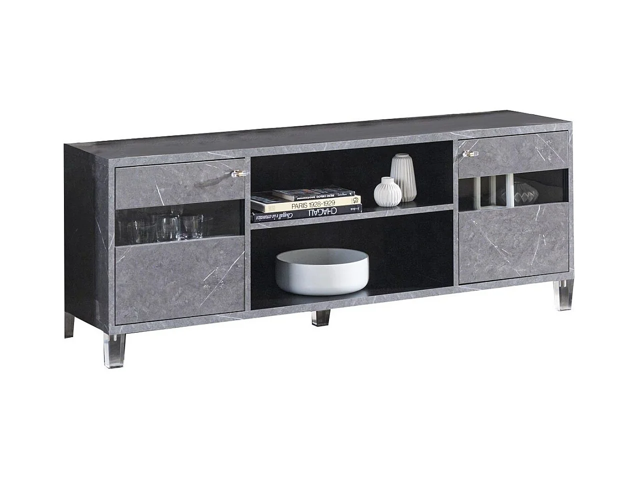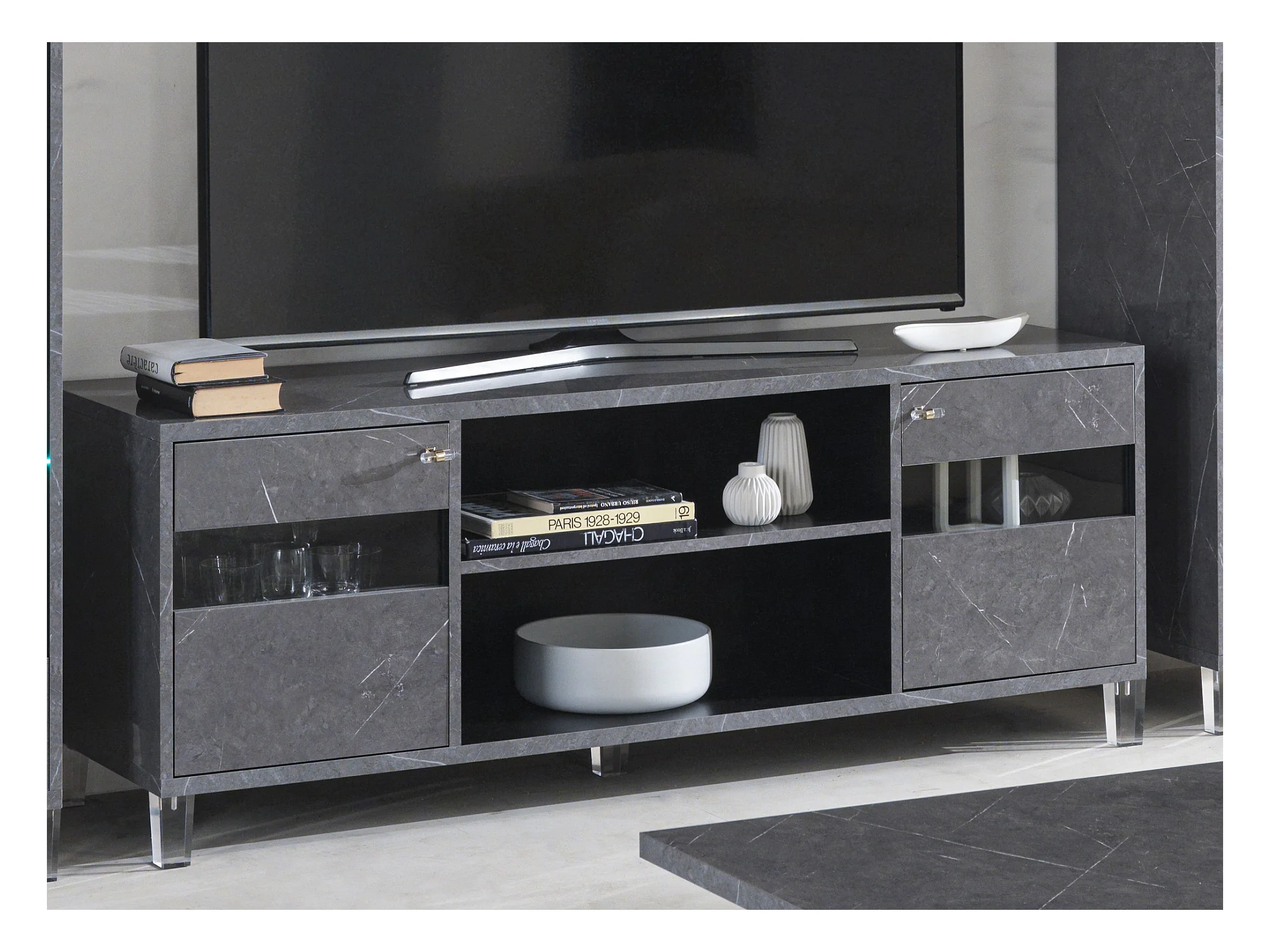 Meuble TV bois gris effet marbre vernis Botela 120cm