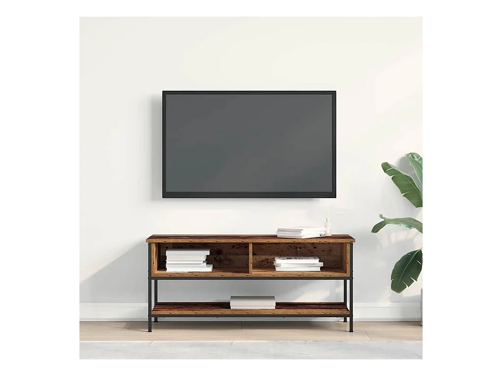 Meuble TV Bois Vieilli 100x35x45 cm Bois Aggloméré et Acier