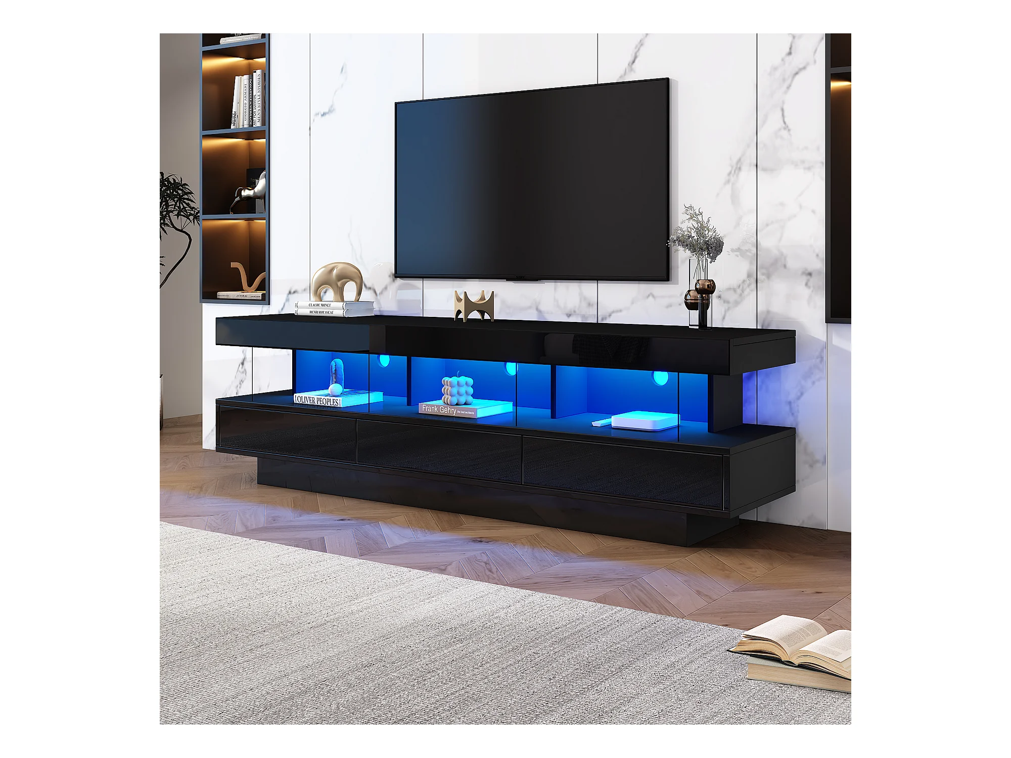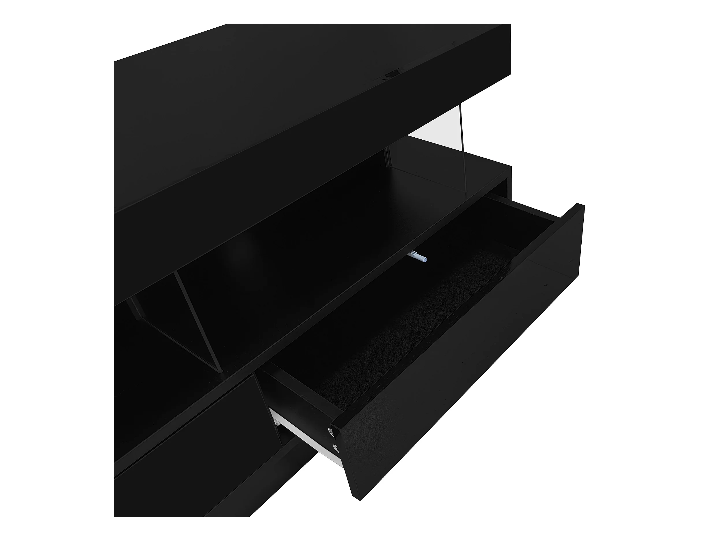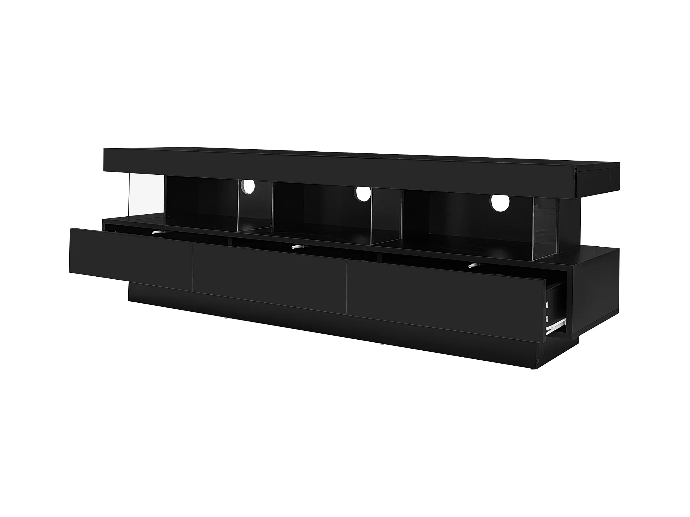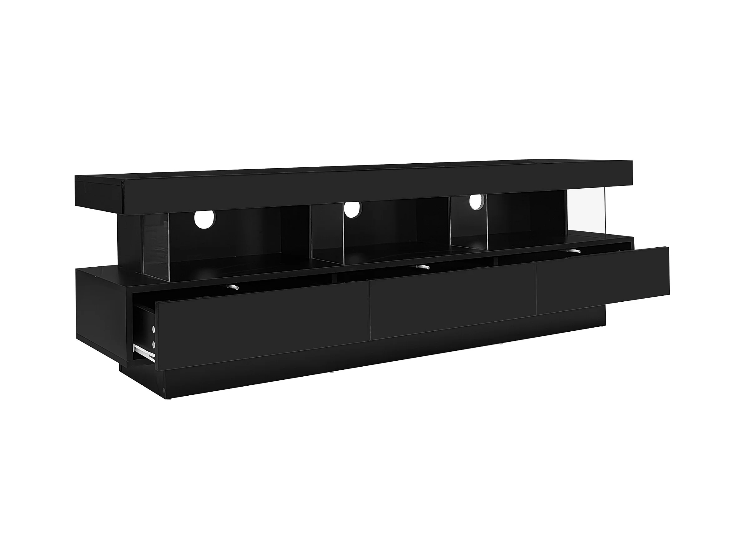 Meuble TV brillant - 160 x 38 x 50,5 cm - 3 étagères en verre - LEDs - Panneaux de particules - Noir