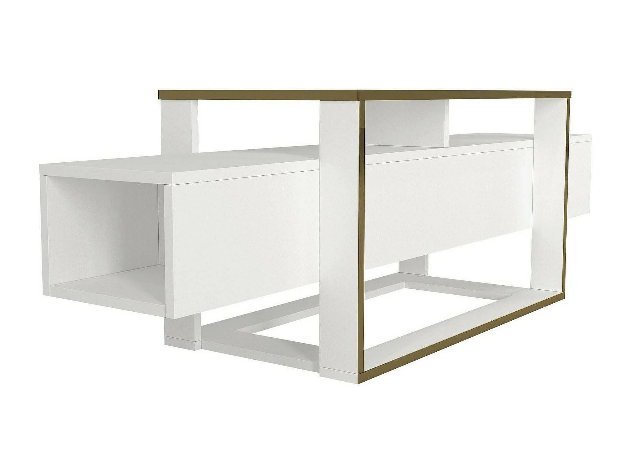 Meuble TV Callisto, Buffet de salon, Armoire basse pour TV, Base murale de rangement, 160x46h50 cm, Blanc et Or