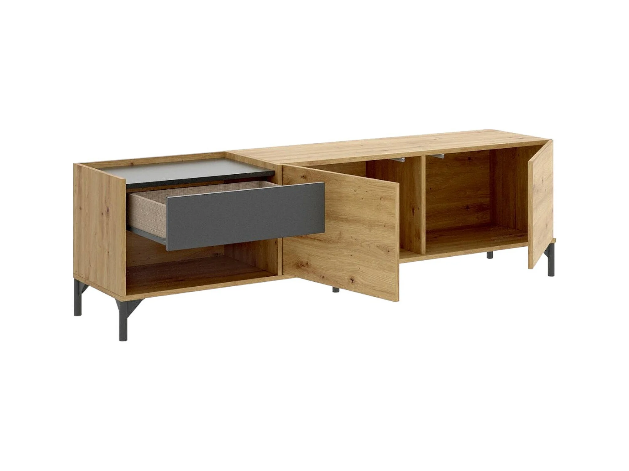 Meuble TV Cengalo, Buffet bas de salon, Buffet de salon pour télévision, 164x39h49 cm, Chêne noué et Anthracite
