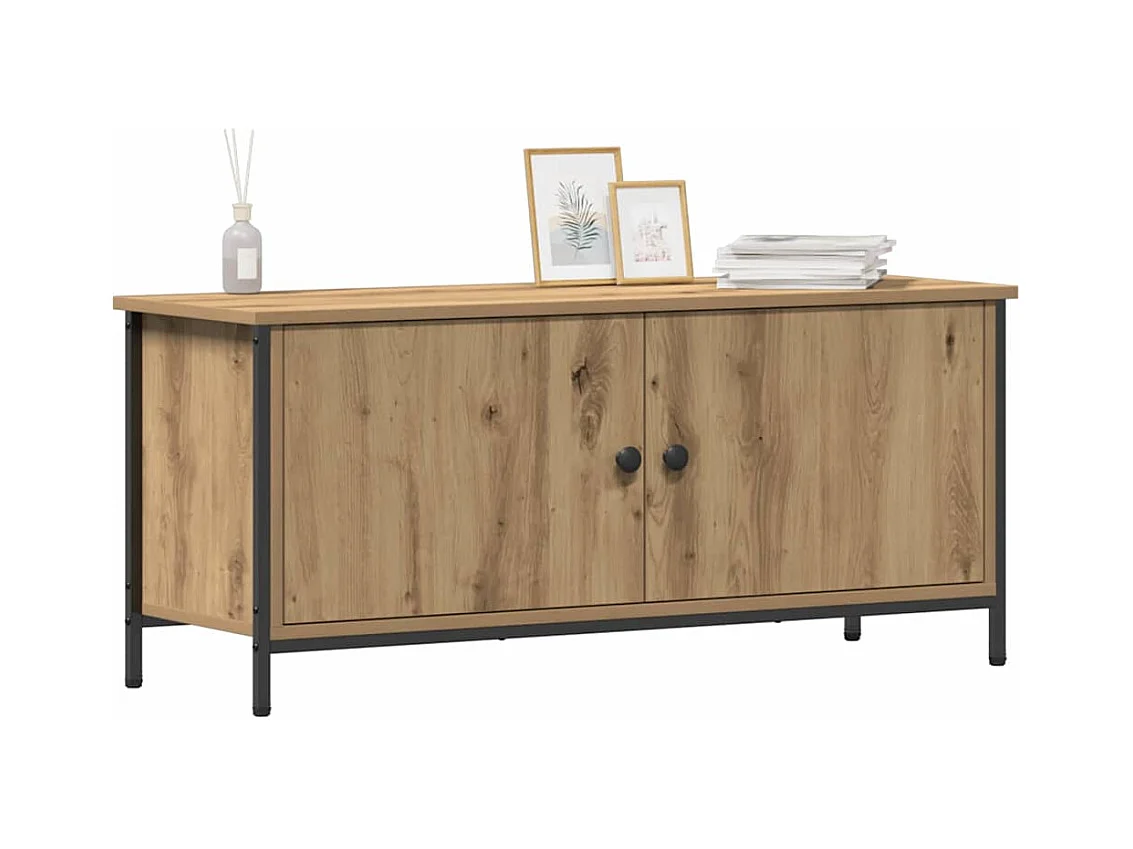 Meuble TV chêne sonoma 100x35x45 cm bois d'ingénierie et fer