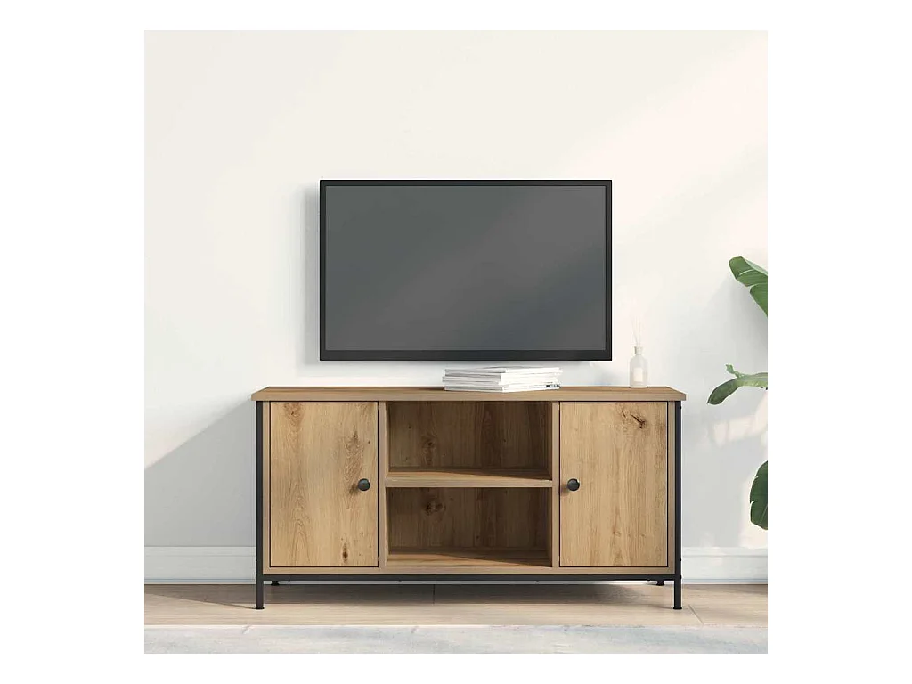 Meuble TV Artisan Chêne 100x40x50 cm Bois d'ingénierie et Acier