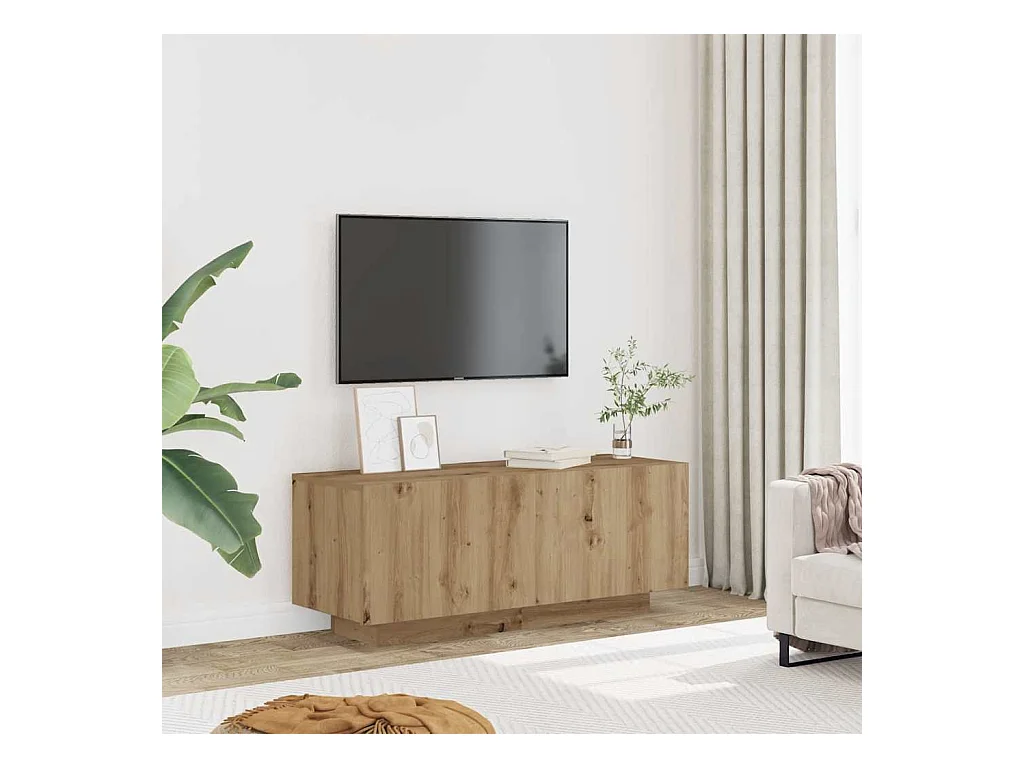 Meuble TV chêne artisanal 100x35x40 cm bois d'ingénierie