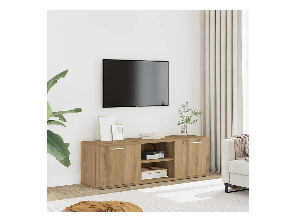 Meuble TV chêne artisanal 120x34x37 cm bois d'ingénierie