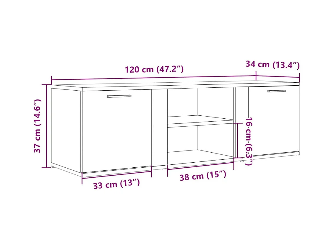 Meuble TV chêne fumé 120x34x37 cm bois d'ingénierie