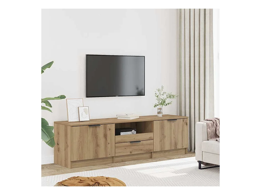 Meuble TV chêne artisanal 140x35x40 cm bois d'ingénierie