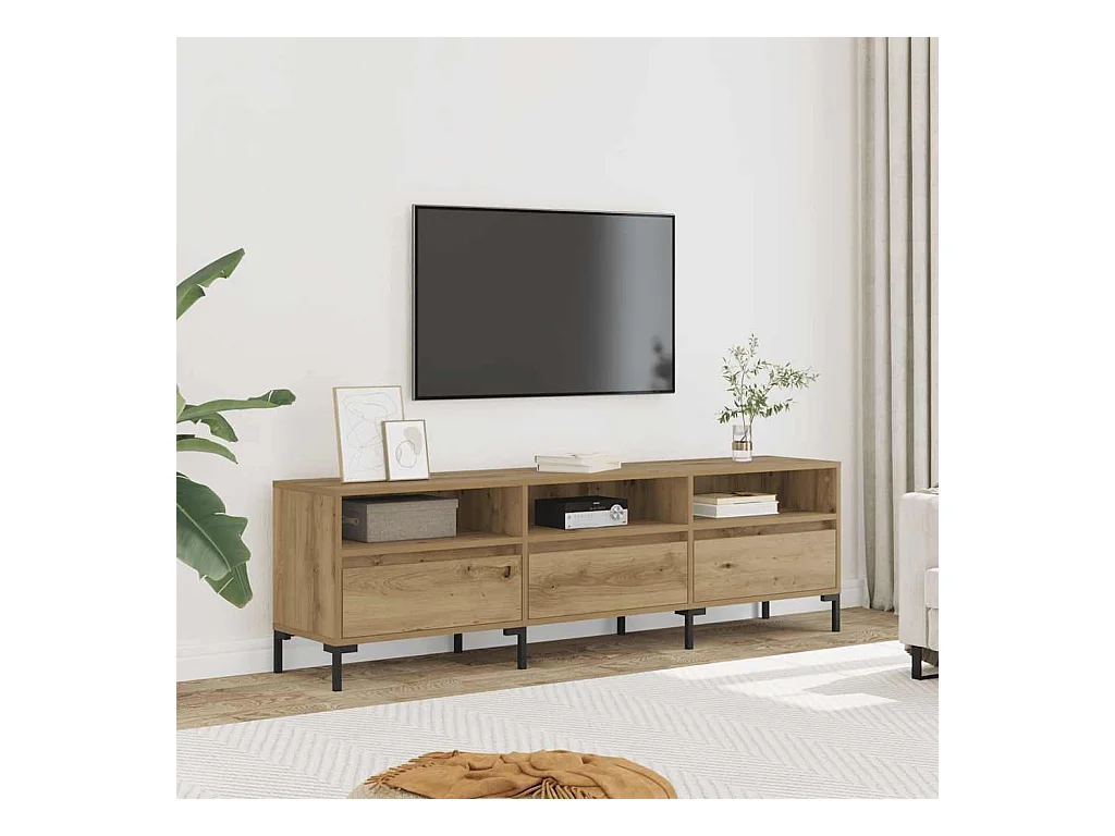 Meuble TV chêne artisanal 150x30x44,5 cm bois d'ingénierie