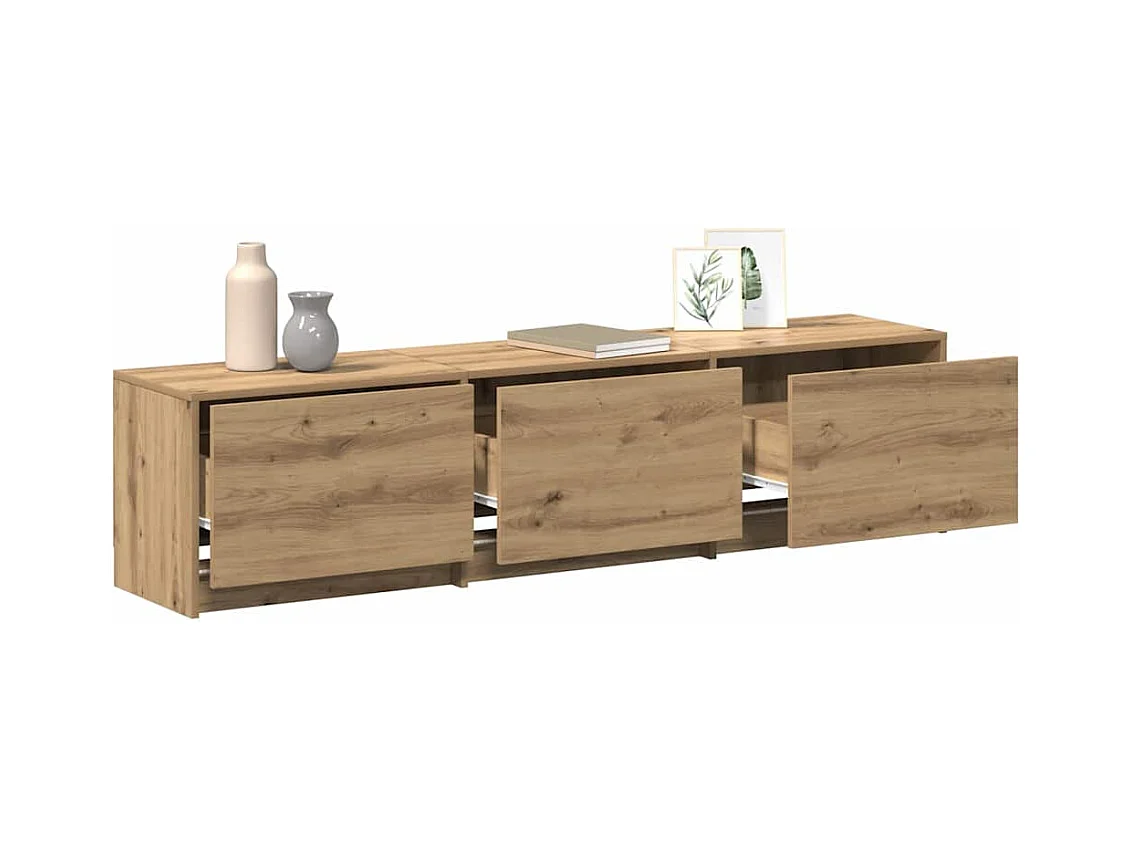 Meuble TV avec lumières LED chêne artisanal bois d'ingénierie