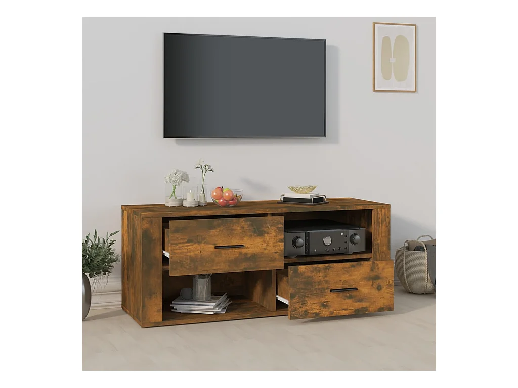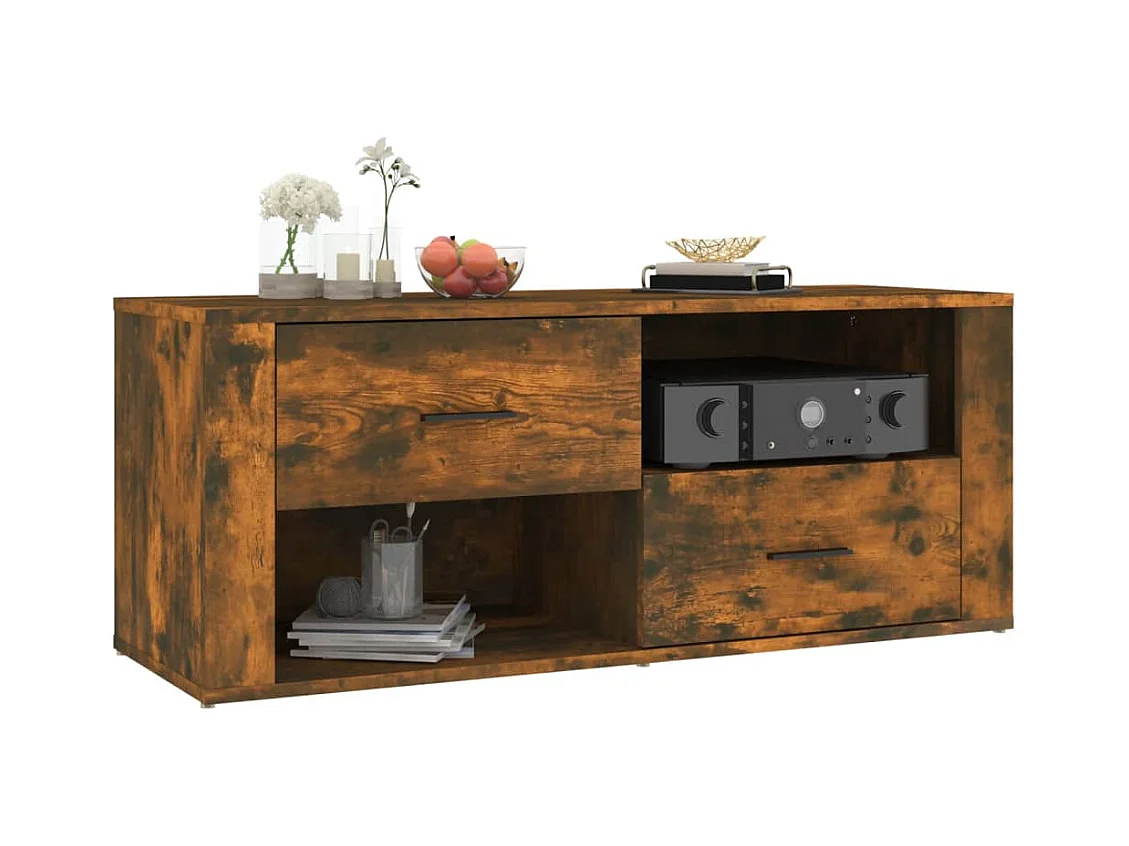 Meuble TV Chêne fumé 100x35x40 cm Bois d'ingénierie