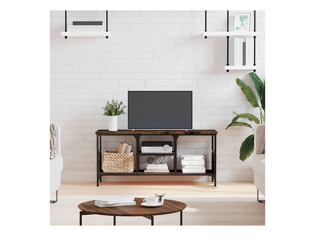 Meuble TV chêne fumé 100x35x45 cm bois d'ingénierie et fer